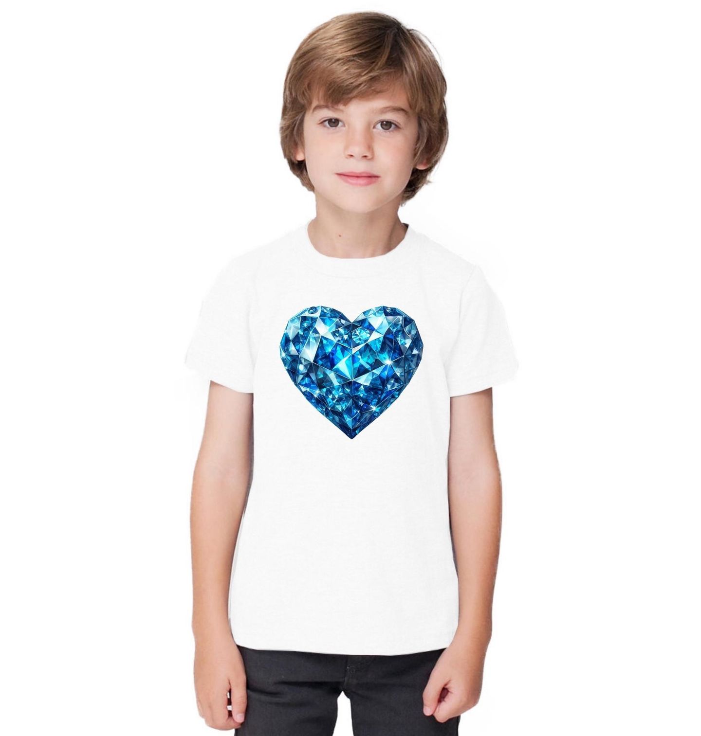 Dětské tričko Modré Diamantové Srdce. Elegantní a luxusní motiv, který zaujme na první pohled. Precizně broušené srdce ve tvaru zářivého krystalu připomíná vzácný drahokam, jehož hluboká modrá barva symbolizuje klid, důvěru a čistotu emocí. Každý detail odráží světlo tak, aby motiv působil výjimečně a nadčasově.