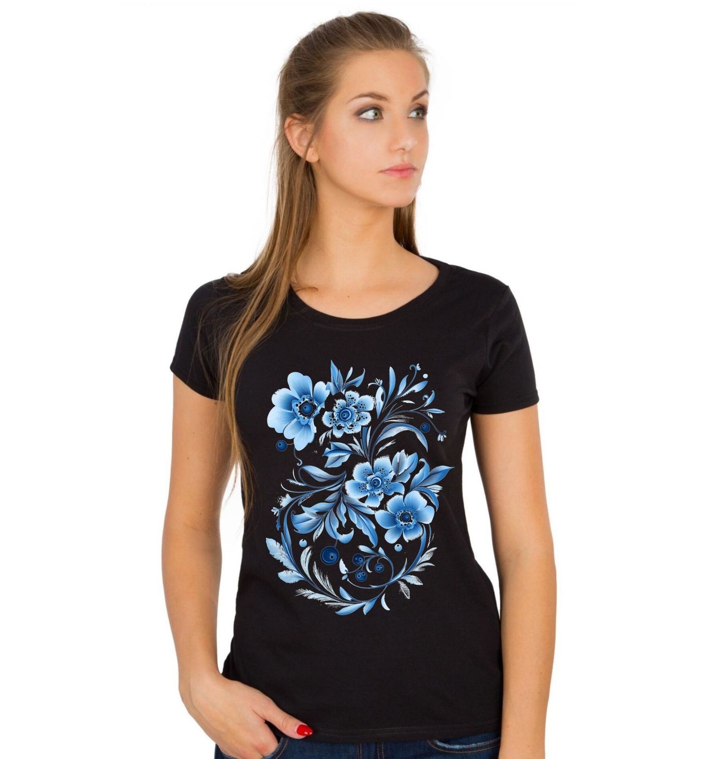 Dámské tričko Modré Folk Květiny. Krásný motiv zachycuje květiny v jemném folk stylu inspirovaném lidovou tvorbou. Ornamentální tvary a modrá barevnost připomínají tradiční vzory, které se objevují v lidovém umění, ale zároveň působí moderně a svěže. Květiny v tomto provedení vyzařují jednoduchou krásu, klid a harmonii. Styl folk dodává motivu nádech tradice, který se snoubí s čistým a elegantním zpracováním.