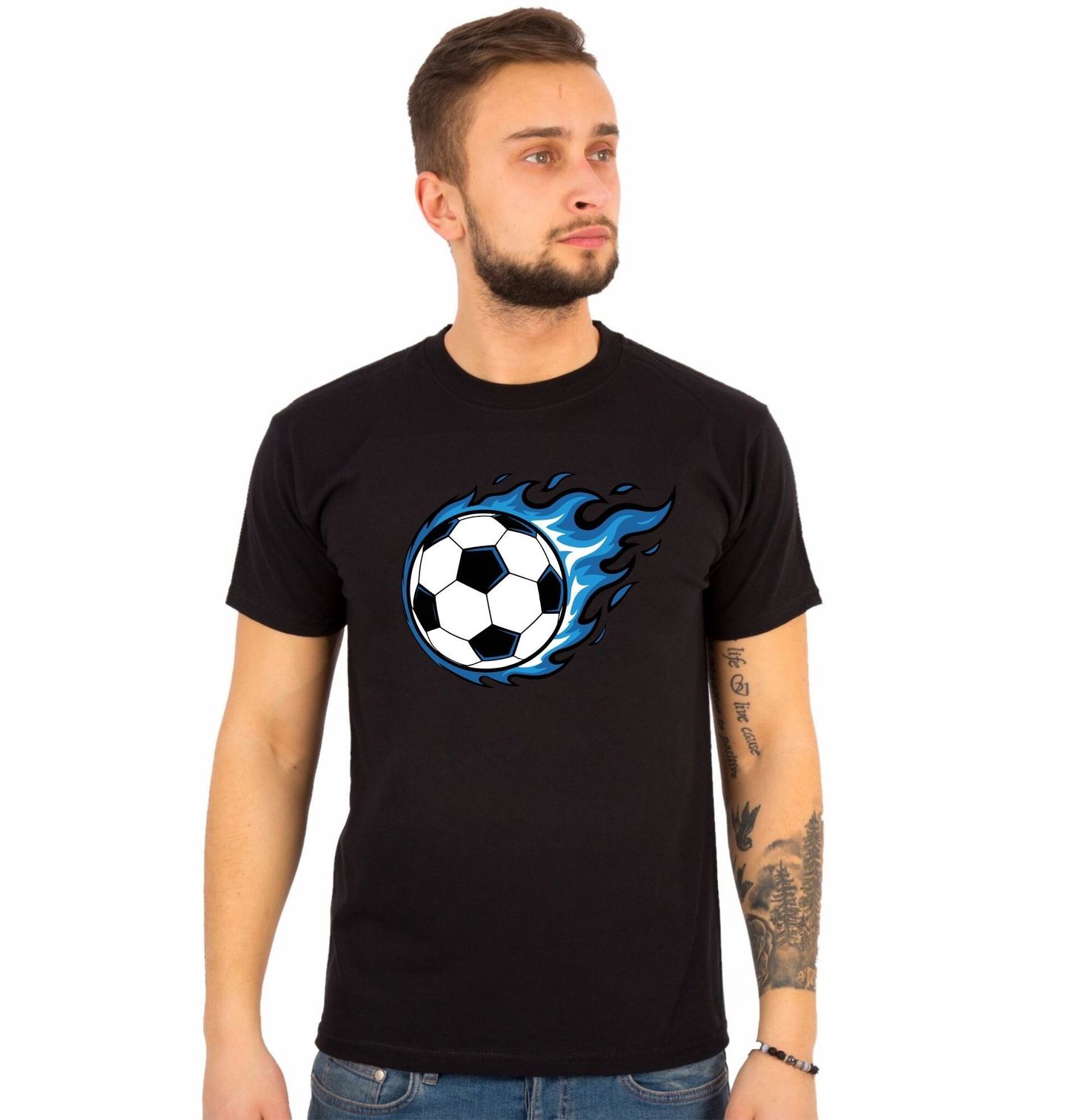 Pánské tričko Modrý Plamen Fotbalu. Rozpoutej vášeň pro sport s tímto stylovým motivem! Ikonický fotbalový míč obklopený modrými plameny symbolizuje rychlost, energii a sílu fotbalového okamžiku. Design je ideální pro všechny milovníky fotbalu, kteří chtějí nosit svou vášeň hrdě na tričku, mikině nebo jiném kousku.