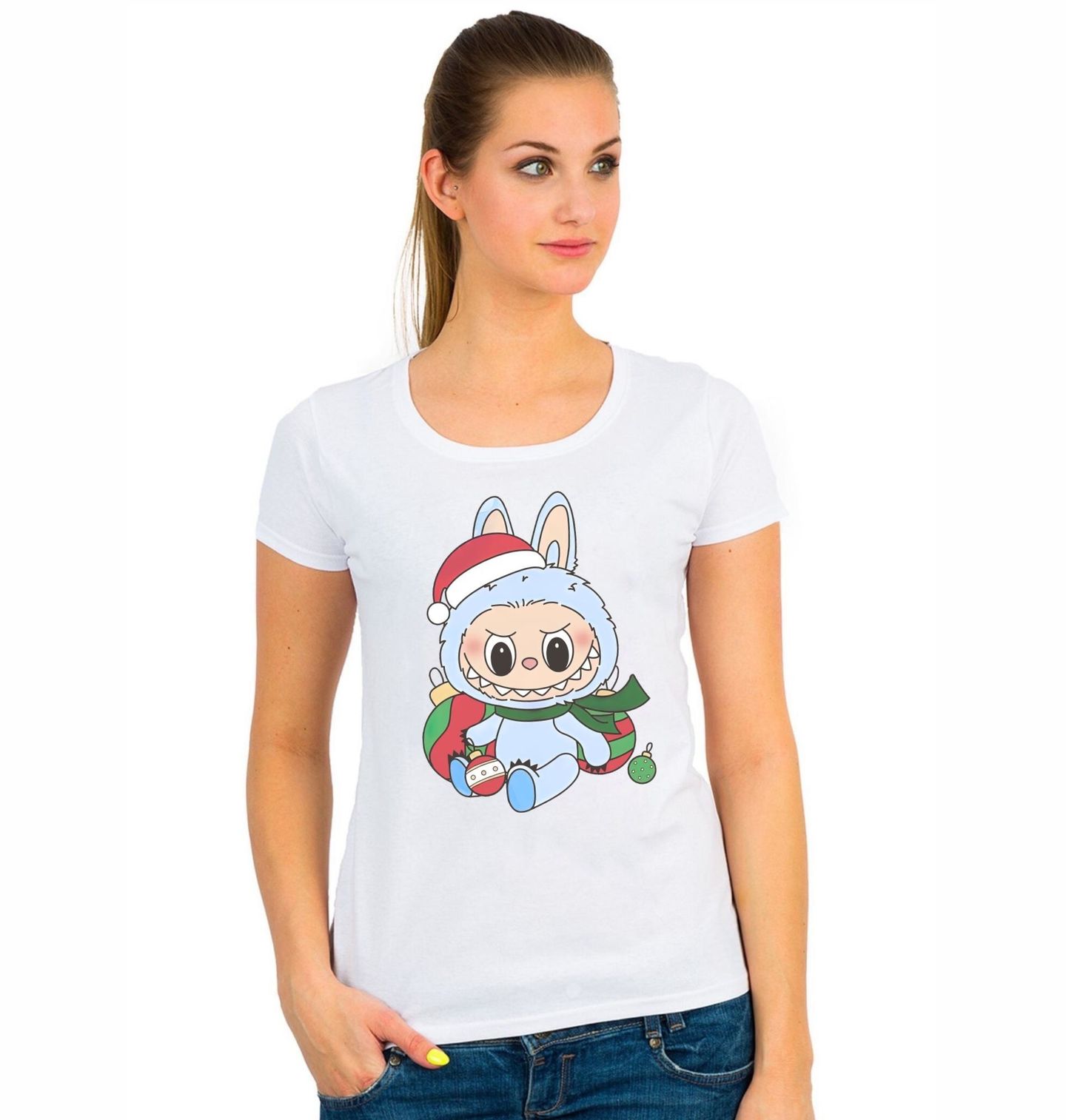 Dámské tričko Modrý Vánoční Labubu. Roztomilý, ale trochu ďábelský úsměv – přesně takový je Labubu, který se tentokrát oblékl do svátečního kabátku! S čepicí na hlavě, šálou kolem krku a hromadou vánočních ozdob. Labubu přináší originální pohled na Vánoce – malinko zlobivý, ale pořád k zulíbání.