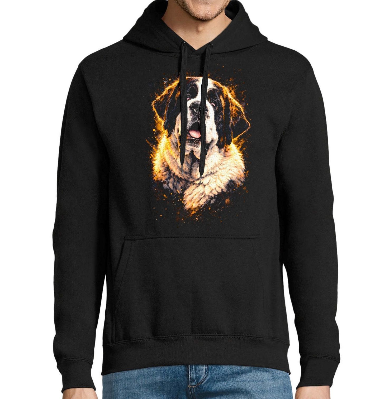 Pánská mikina Mohutný Bernardýn. Bernardýn je klidný, přátelský a ochranitelský pes, který je známý svou trpělivostí a dobrosrdečností. Tento design dokonale vystihuje jeho majestátní vzhled i jemnou povahu, díky čemuž je ideální pro všechny milovníky tohoto plemene. Detailní portrét zdůrazňuje typické rysy – mohutnou hlavu, hustou srst a laskavý výraz, který z tohoto plemene dělá ideálního rodinného společníka. Každý pejskař si v tomto motivu najde symbol věrnosti a síly.