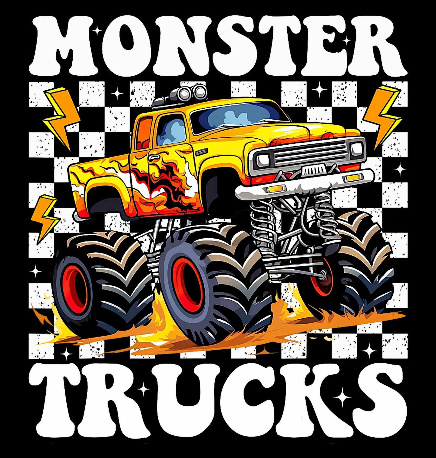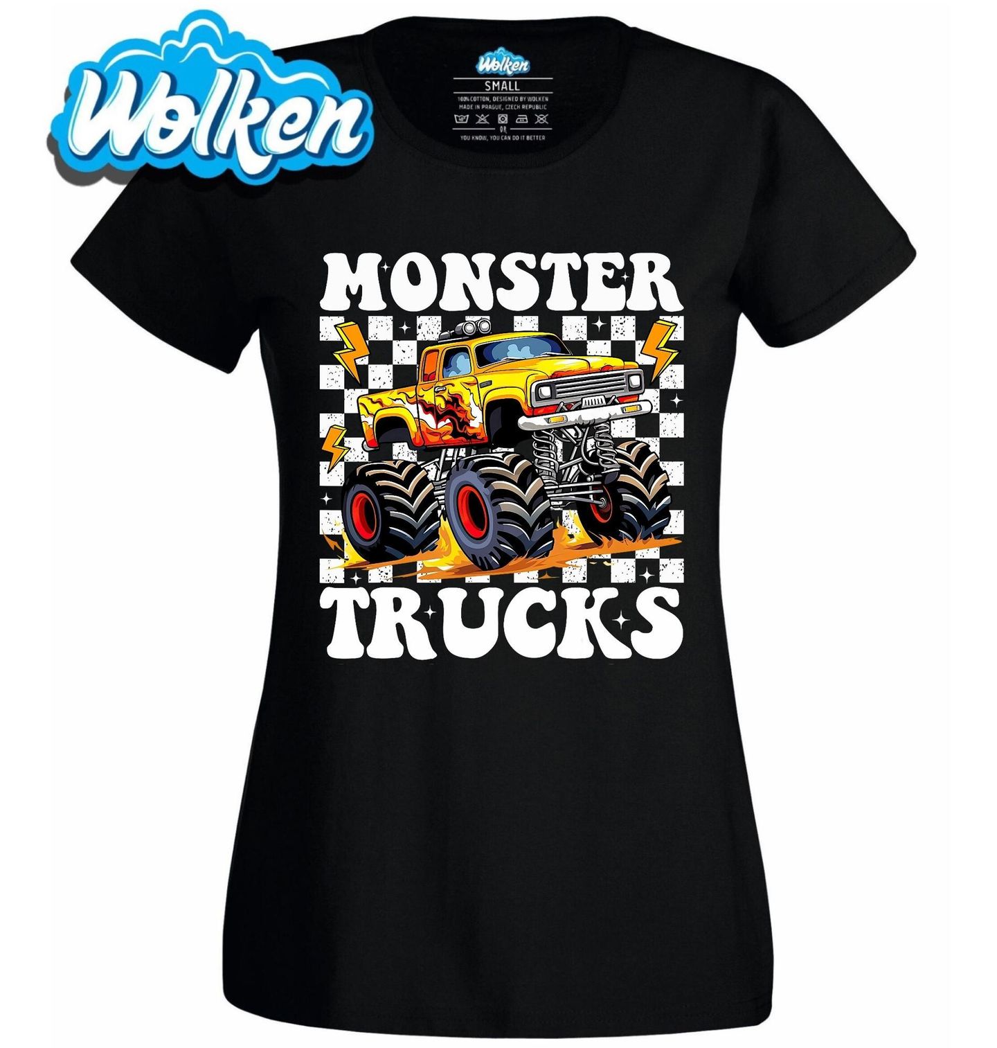 Dámské tričko Monster Truck na Pružinách. Kdo miluje hluk motorů, vůni benzínu a obrovská kola, ten tohle prostě musí mít. Auto, které vládne aréně přináší parádní motiv obřího monster trucku v retro stylu s plameny, blesky a šachovnicovým pozadím. Někdy se těm pružinám (odpružení) slangově říká: “lift” (zvednuté auto – “lifted truck”)