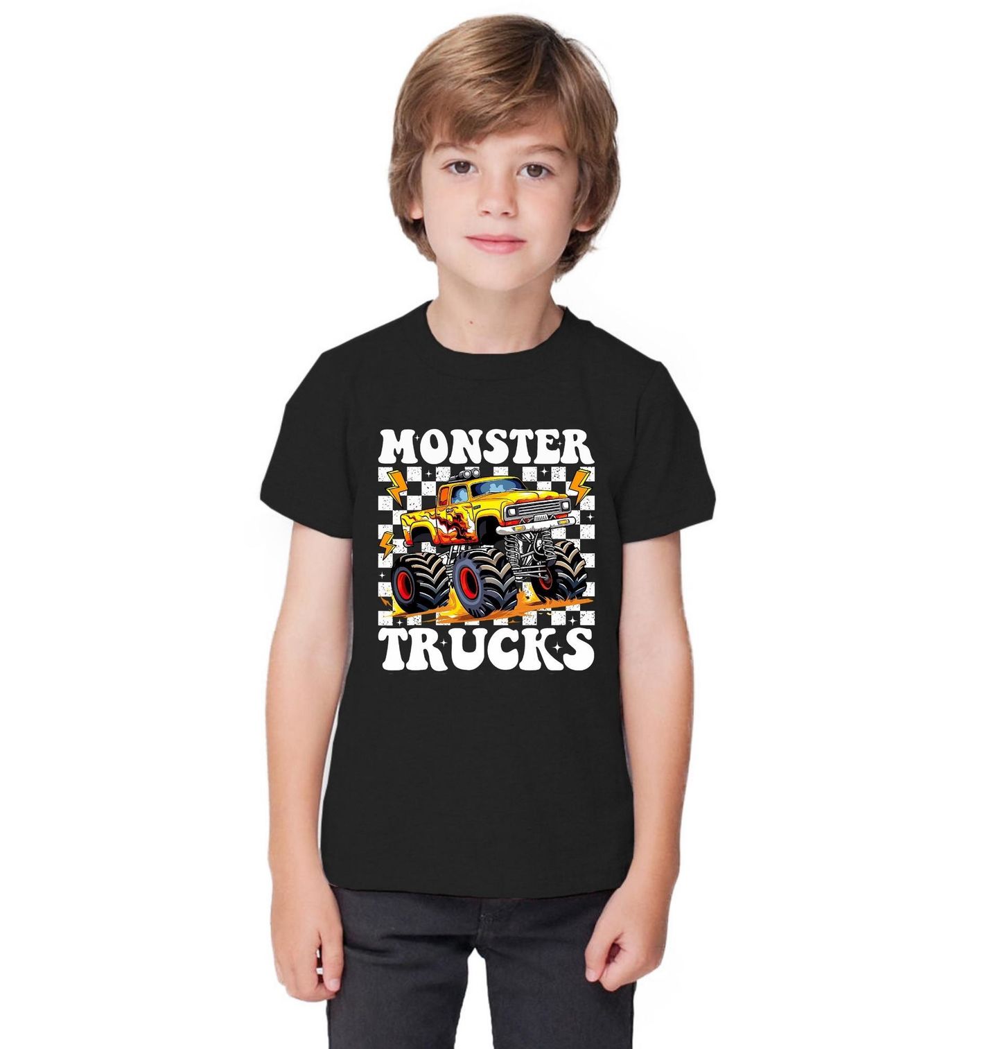 Dětské tričko Monster Truck na Pružinách. Kdo miluje hluk motorů, vůni benzínu a obrovská kola, ten tohle prostě musí mít. Auto, které vládne aréně přináší parádní motiv obřího monster trucku v retro stylu s plameny, blesky a šachovnicovým pozadím. Někdy se těm pružinám (odpružení) slangově říká: “lift” (zvednuté auto – “lifted truck”)