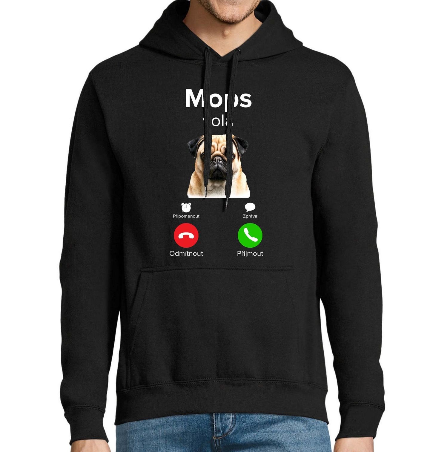 Pánská mikina Mops volá Phone Call