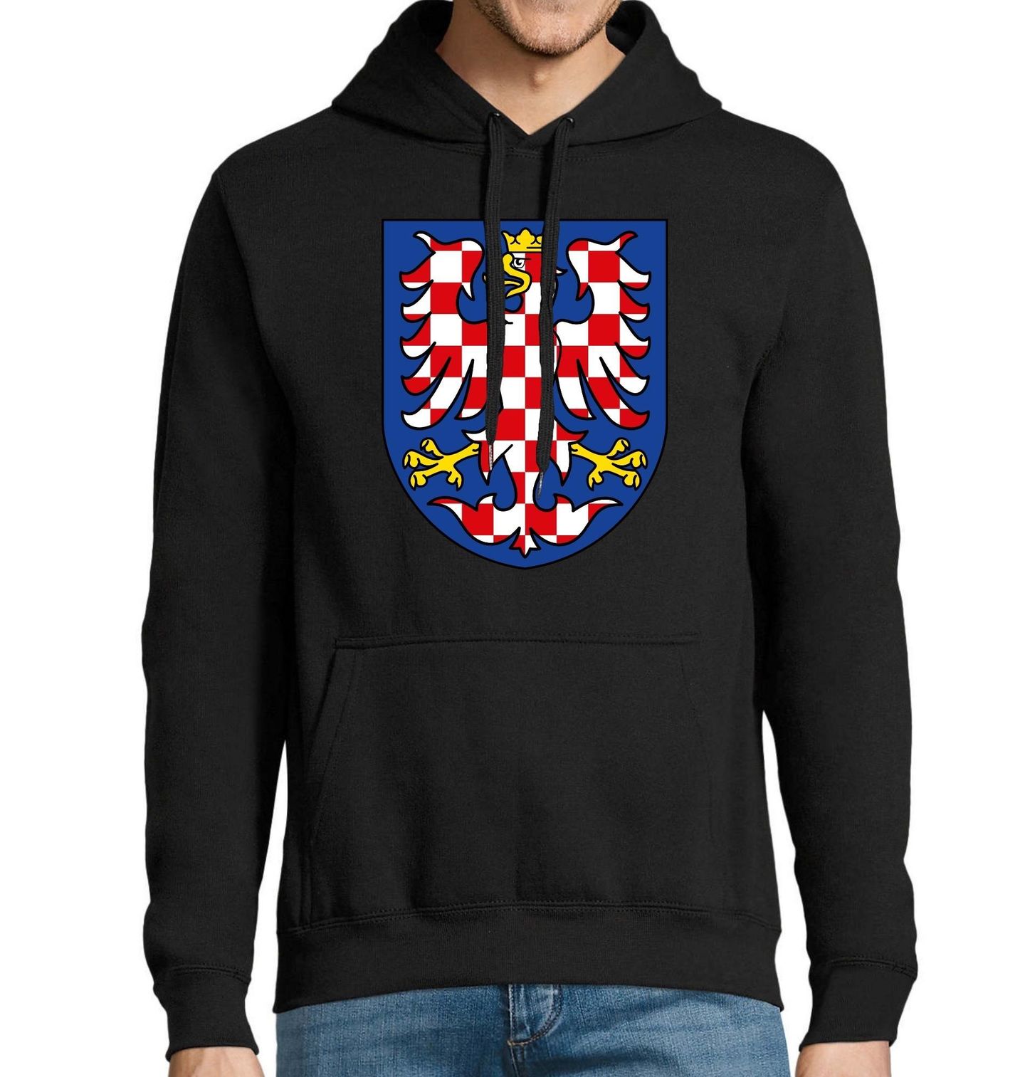 Pánská mikina Moravská orlice Znak Moravy. Na obrázku je moravská orlice – historický heraldický znak Moravy. Jedná se o červeno-stříbrně šachovanou orlici se zlatou korunou na modrém štítě. Tento symbol patří mezi tradiční zemské znaky a je součástí velkého státního znaku pro Česko. Motiv je vhodný jako dárek pro milovníky historie, sběratele znaků nebo každého, kdo chce reprezentovat Česko stylově.