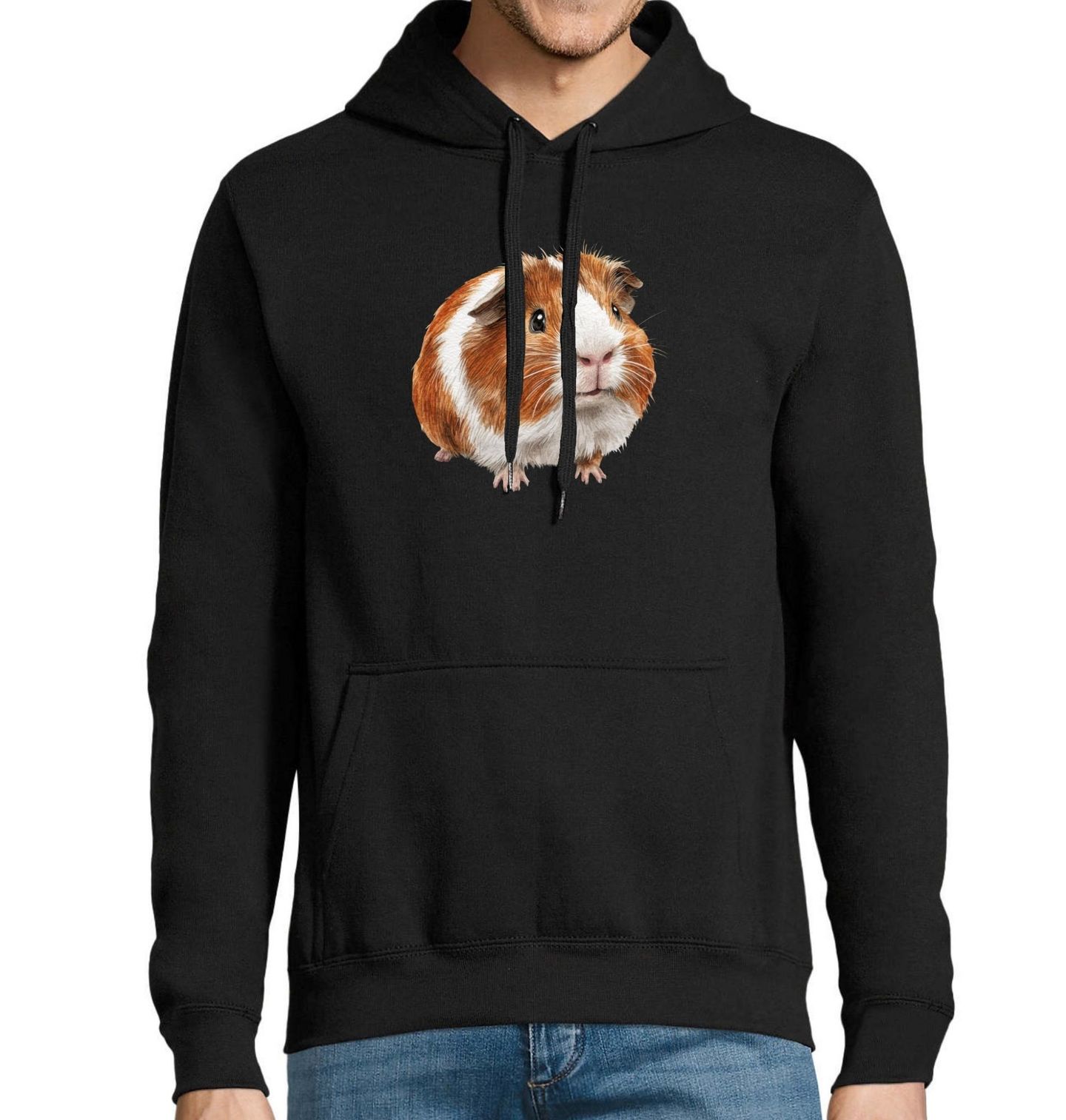 Pánská mikina Morče American Guinea Pig. Tento jemný a realistický motiv zachycuje roztomilé domácí zvířátko, kde v hlavní roli je morče s typickým mazlivým výrazem a hebkou srstí. Detailní ilustrace působí přátelsky a hřejivě — přesně tak, jak na nás morče působí i ve skutečnosti. Ideální design pro všechny milovníky těchto malých chlupatých kamarádů, kterým morče dělá radost každý den.