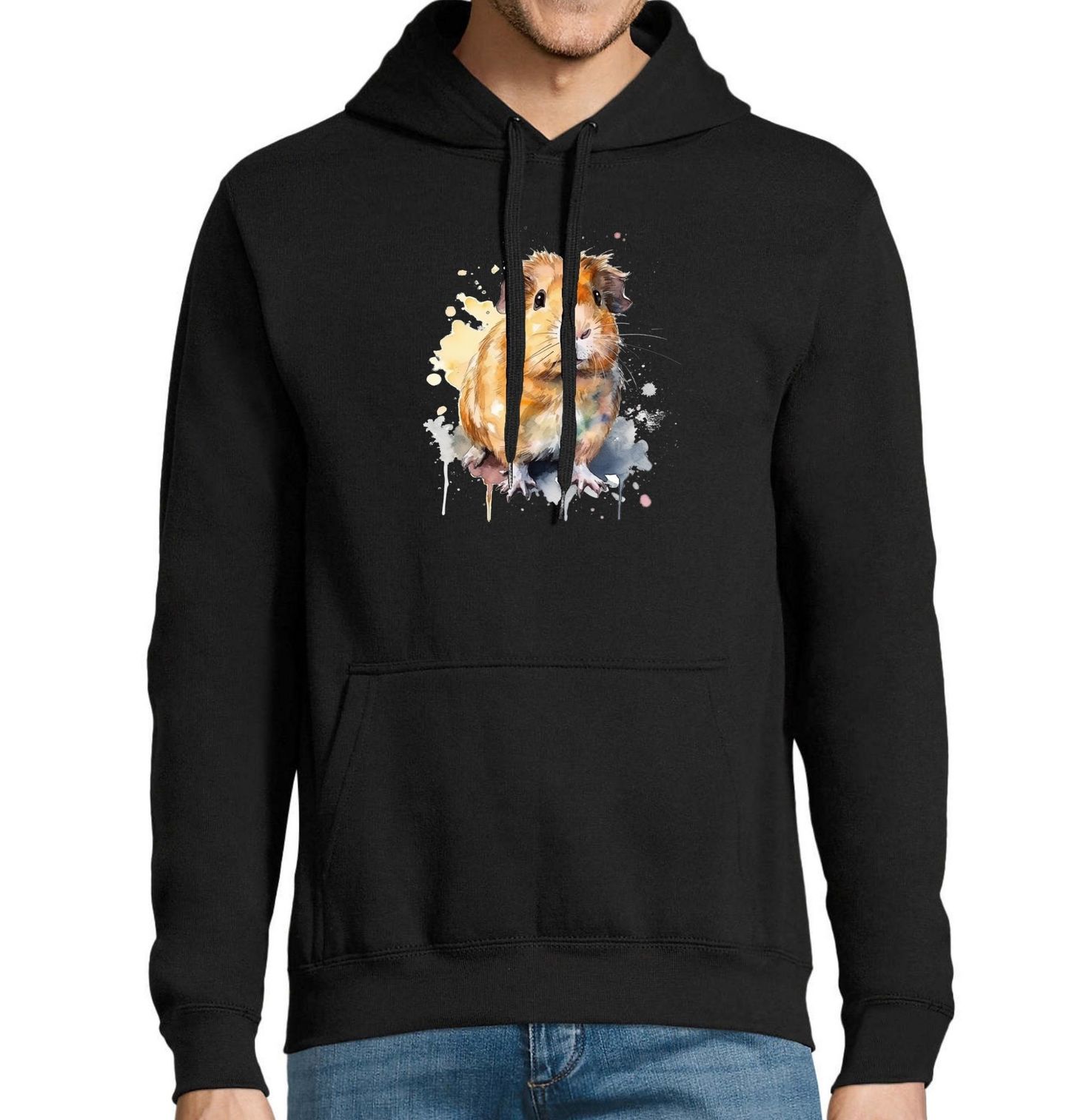 Pánská mikina Morče Guinea pig. Morče domácí (Cavia porcellus) je domestikovaná forma jihoamerického hlodavce morčete divokého. Patří mezi oblíbené domácí mazlíčky. Morče je symbolem klidu, pohody a domácí radosti – a přesně to tento motiv vyzařuje.