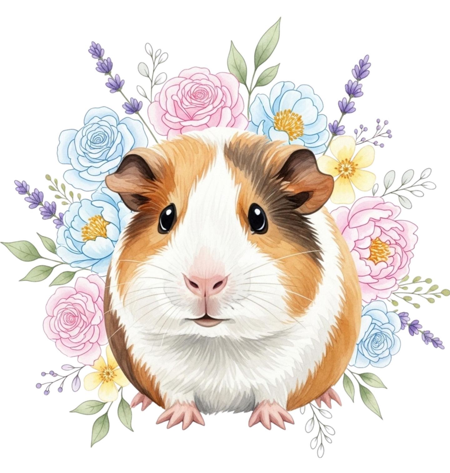 Pánské tričko Morče hladkosrsté mezi Květinami. Podle vzhledu se jedná o hladkosrsté domácí morče, často označované jako americké morče. Tento druh morčete je nejrozšířenější, má krátkou, hladkou srst a typický kulatý tvar těla. Morče a květiny zde tvoří krásný celek, který potěší děti i dospělé a osloví každého milovníka mazlíčků, jemných ilustrací a přírodní estetiky.