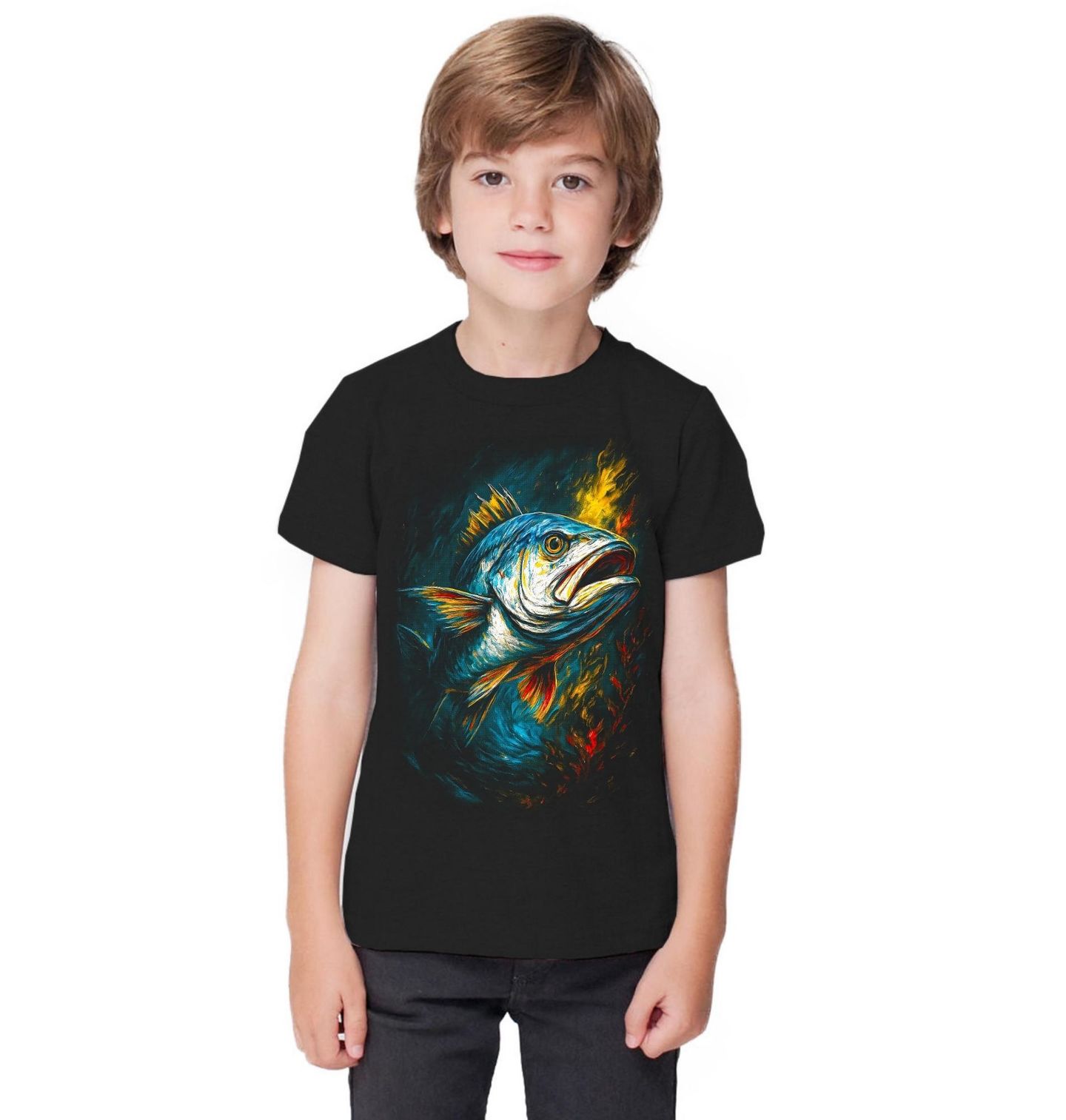 Dětské tričko Mořský okoun Sea Bass. Výrazný a energický motiv zachycuje mořského okouna (sea bass), obávaného dravce pobřežních a hlubších vod. Mořský okoun je vyhledávanou trofejí, kterou oceňuje každý zkušený rybář. Tento design dokonale vystihuje napětí okamžiku, kdy se rozhoduje o úspěchu – přesně to, co dělá rybaření tak návykovým.
