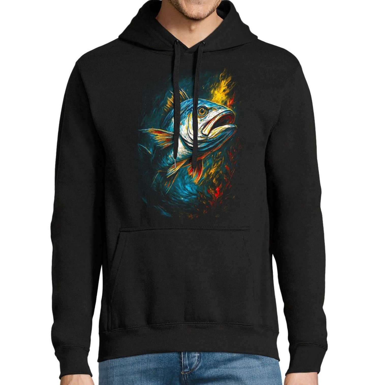Pánská mikina Mořský okoun Sea Bass. Výrazný a energický motiv zachycuje mořského okouna (sea bass), obávaného dravce pobřežních a hlubších vod. Mořský okoun je vyhledávanou trofejí, kterou oceňuje každý zkušený rybář. Tento design dokonale vystihuje napětí okamžiku, kdy se rozhoduje o úspěchu – přesně to, co dělá rybaření tak návykovým.