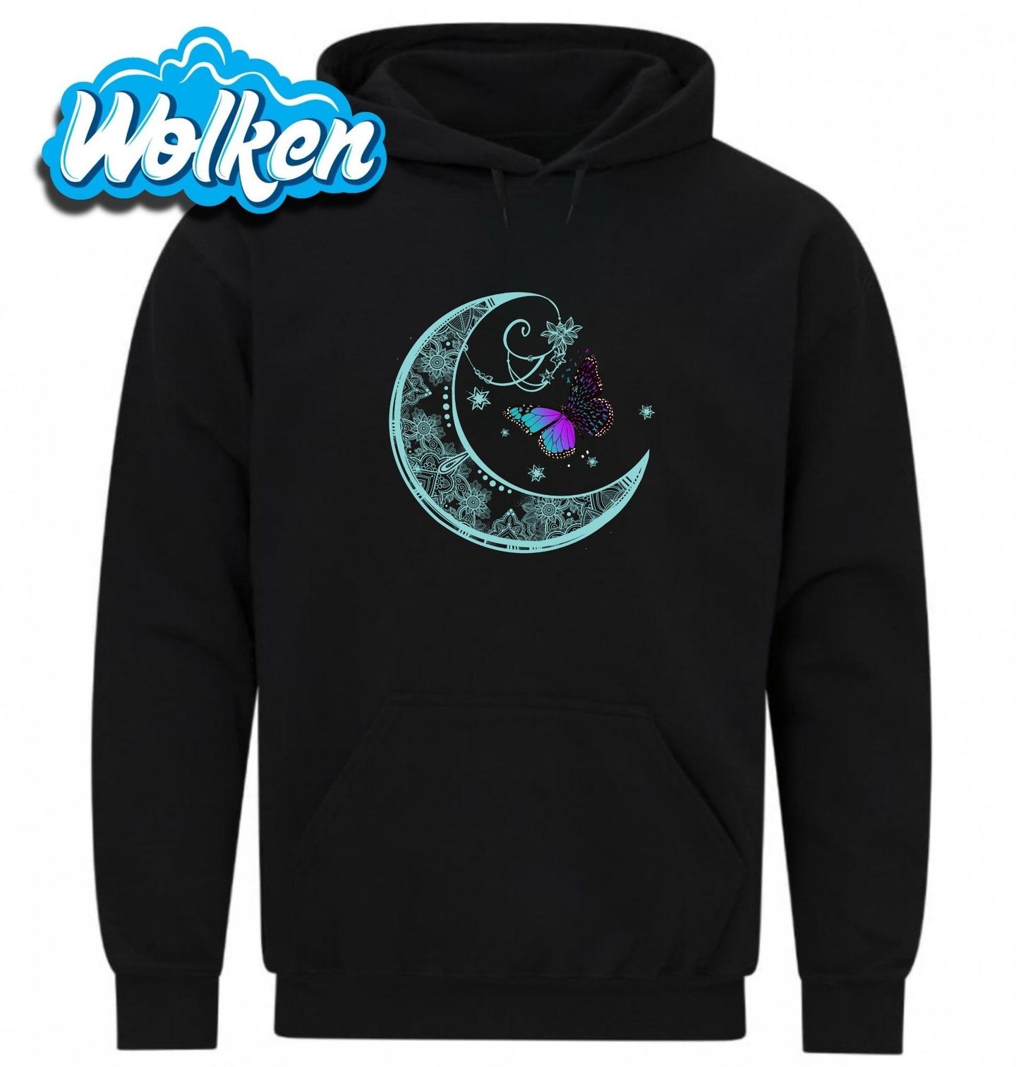 Pánská mikina Motýl Měsíční Noci. Barevný motýl vznášející se kolem ornamentálního půlměsíce symbolizuje svobodu, krásu a jemnost ženské energie. Mandalové vzory, hvězdy a jemné detaily podtrhují mystickou atmosféru noční oblohy. Tento design je ideální pro milovníky boho stylu, magie přírody i astrologie.