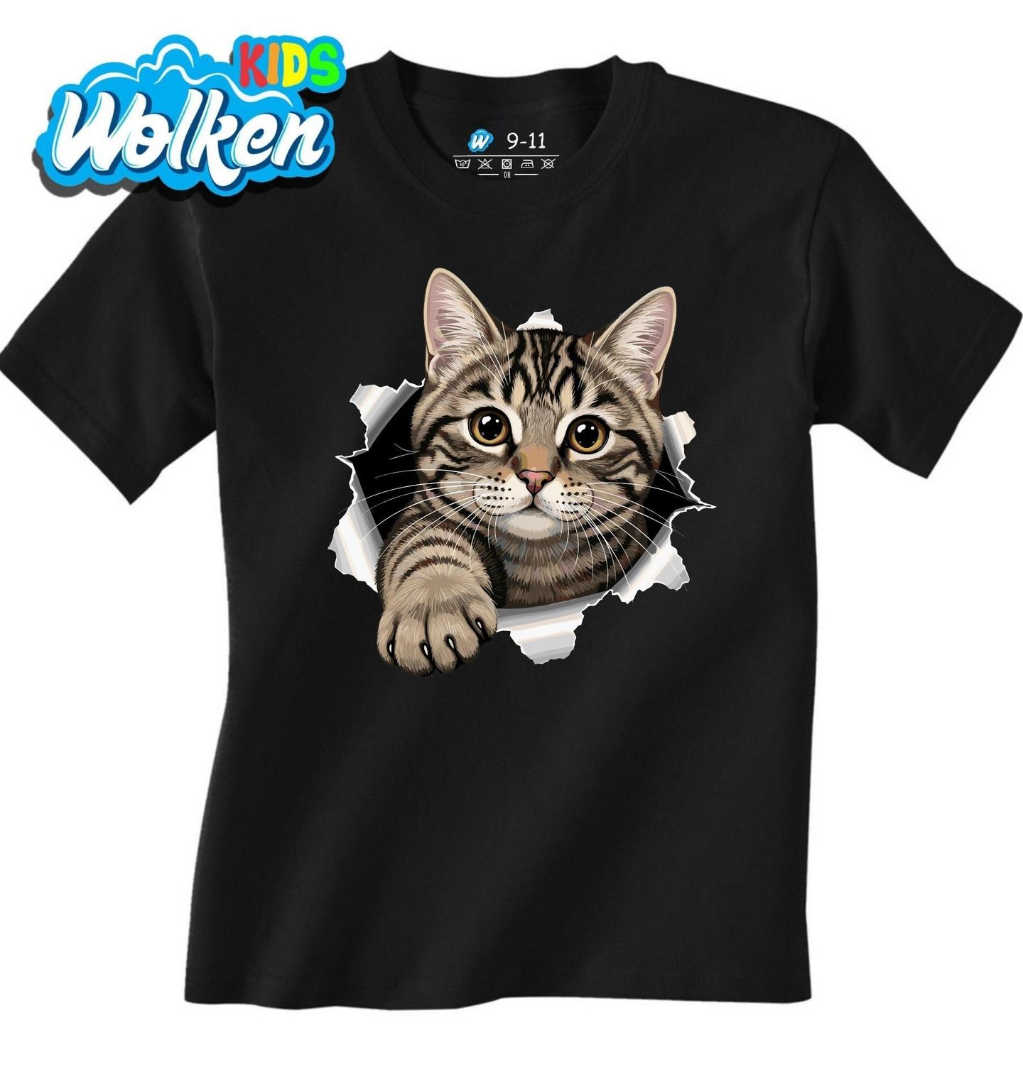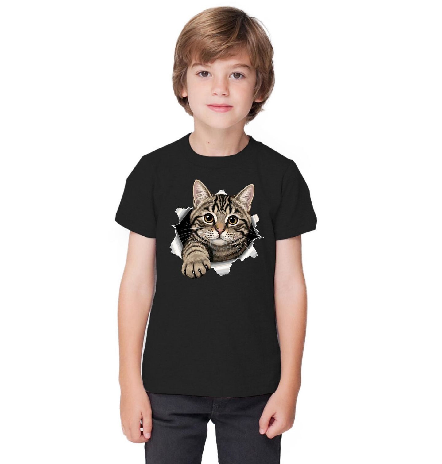 Dětské tričko Mourovatá Kočka pod Kůží. Tahle kočka tě doslova chytí za srdce! Design s realistickým 3D efektem vytváří iluzi, že se roztomilá mourovatá kočka dere skrz tričko ven. Její velké oči a natažená packa zaručeně přitáhnou pozornost – a vykouzlí úsměv všem, kdo ji potkají.