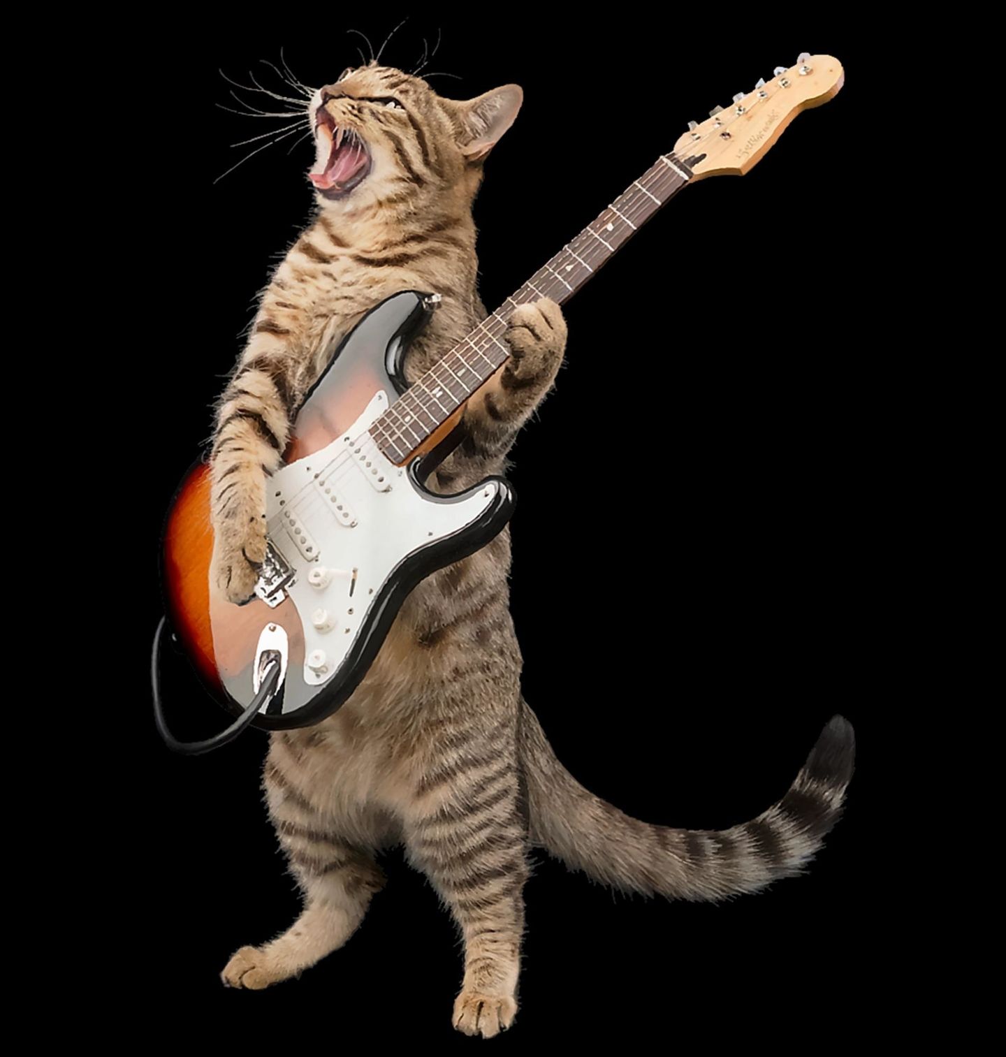 Dámské tričko Mourovatá Kočka s Elektrickou Kytarou. Originální motiv zachycuje energickou kočka v roli skutečné hudební hvězdy. Stojí na zadních tlapkách, drží elektrickou kytaru a s otevřenou tlamou naplno „zpívá“ svůj koncertní hit. Celý design vyzařuje nespoutanou energii, radost z hudby a vášeň, kterou představuje rock and roll.