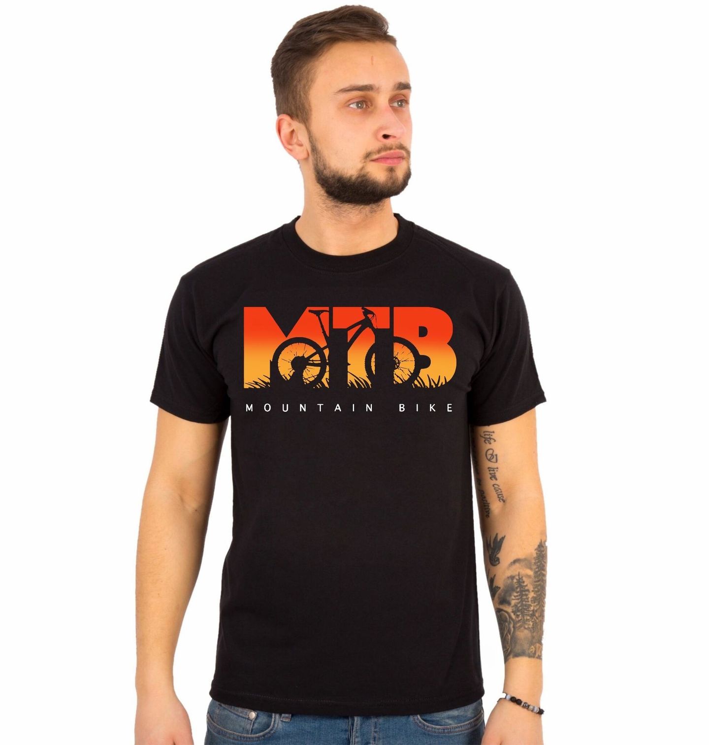 Pánské tričko MTB Horské Kolo. Grafika s nápisem „MTB – MOUNTAIN BIKE“ (horské kolo) zobrazuje siluetu kola v moderním gradientu. Perfektní pro cyklisty, kteří milují terén a svobodu jízdy.