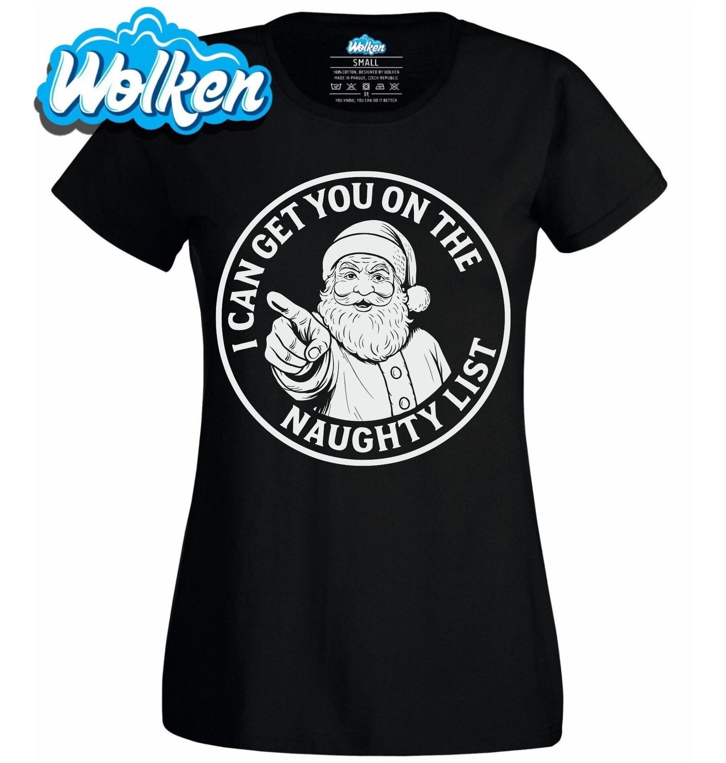 Dámské tričko Můžu tě dostat na seznam zlobivých. Vánoce s pořádnou dávkou humoru! Stylový motiv Santy s nápisem „I can get you on the naughty list“ (v překladu: „Můžu tě dostat na seznam zlobivců“) je ideální pro každého, kdo se nebojí ukázat svoji zlobivou stránku.
