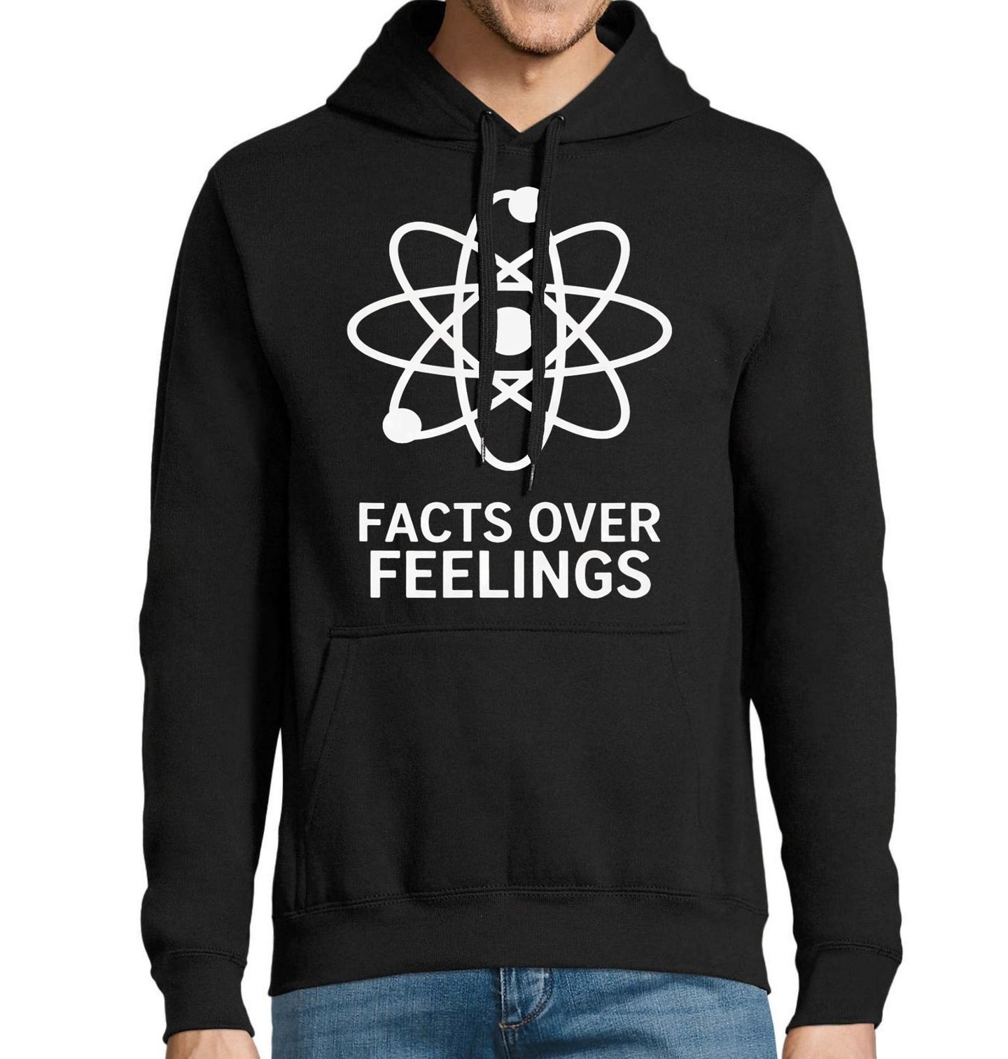 Pánská mikina Mysli Racionálně. Moderní design s atomem a silným sdělením „Facts over feelings“, což znamená „Fakta nad pocity“. Tento design osloví všechny, kdo věří v logiku, vědu a racionální přístup k životu. Skvělá volba pro analytické myšlení a fanoušky vědy.