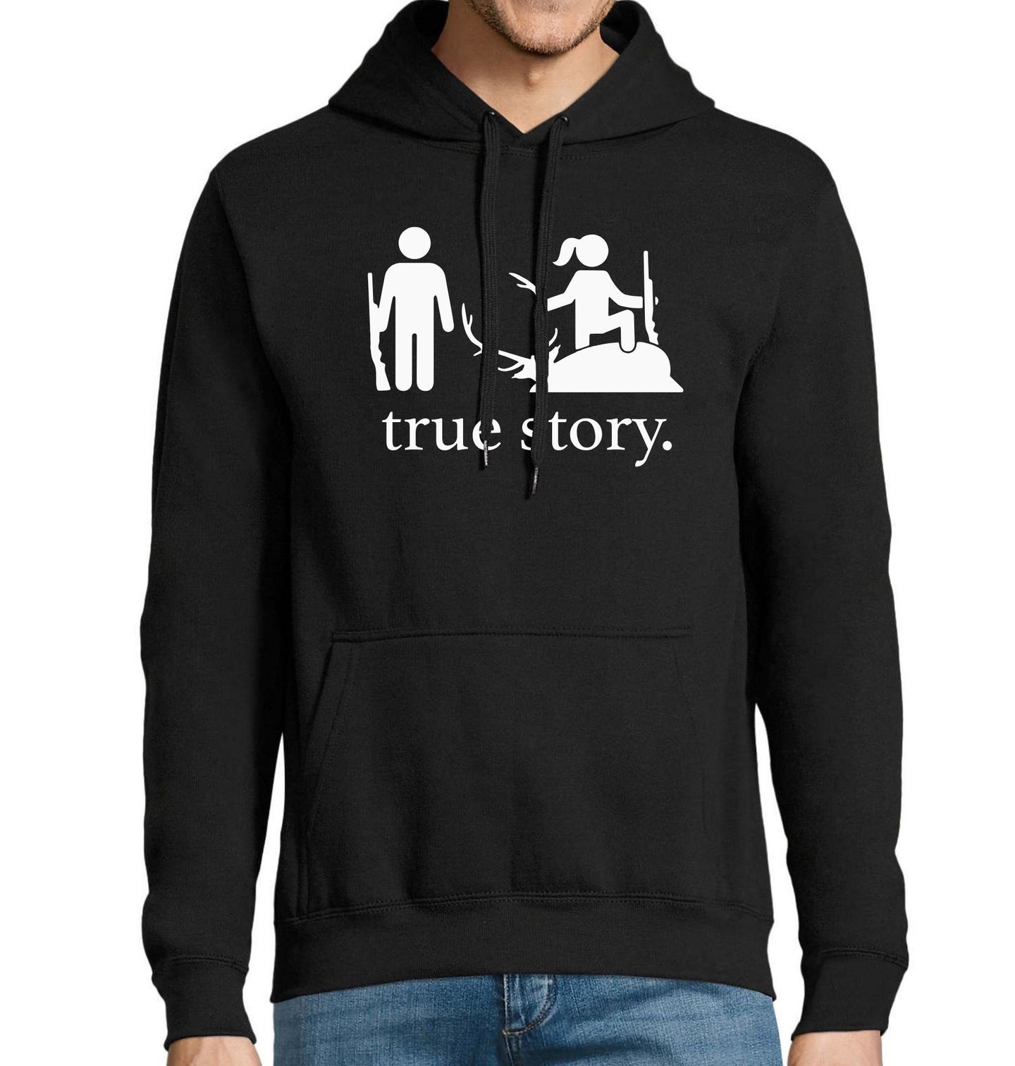 Pánská mikina Myslivcova Žena True Story. Zatímco on se celý den snažil ulovit jelena, jeho žena prostě šla, zamířila... a je hotovo. Ale neboj – je to samozřejmě vtip (nebo snad ne?). Skvělý dárek pro každého, kdo miluje myslivost, má smysl pro humor a ví, že v lese rozhodně nejde jen o trofeje. Každý myslivec, který se nebojí pravdy – ani té trochu přikrášlené si zaslouží tohle tričko!