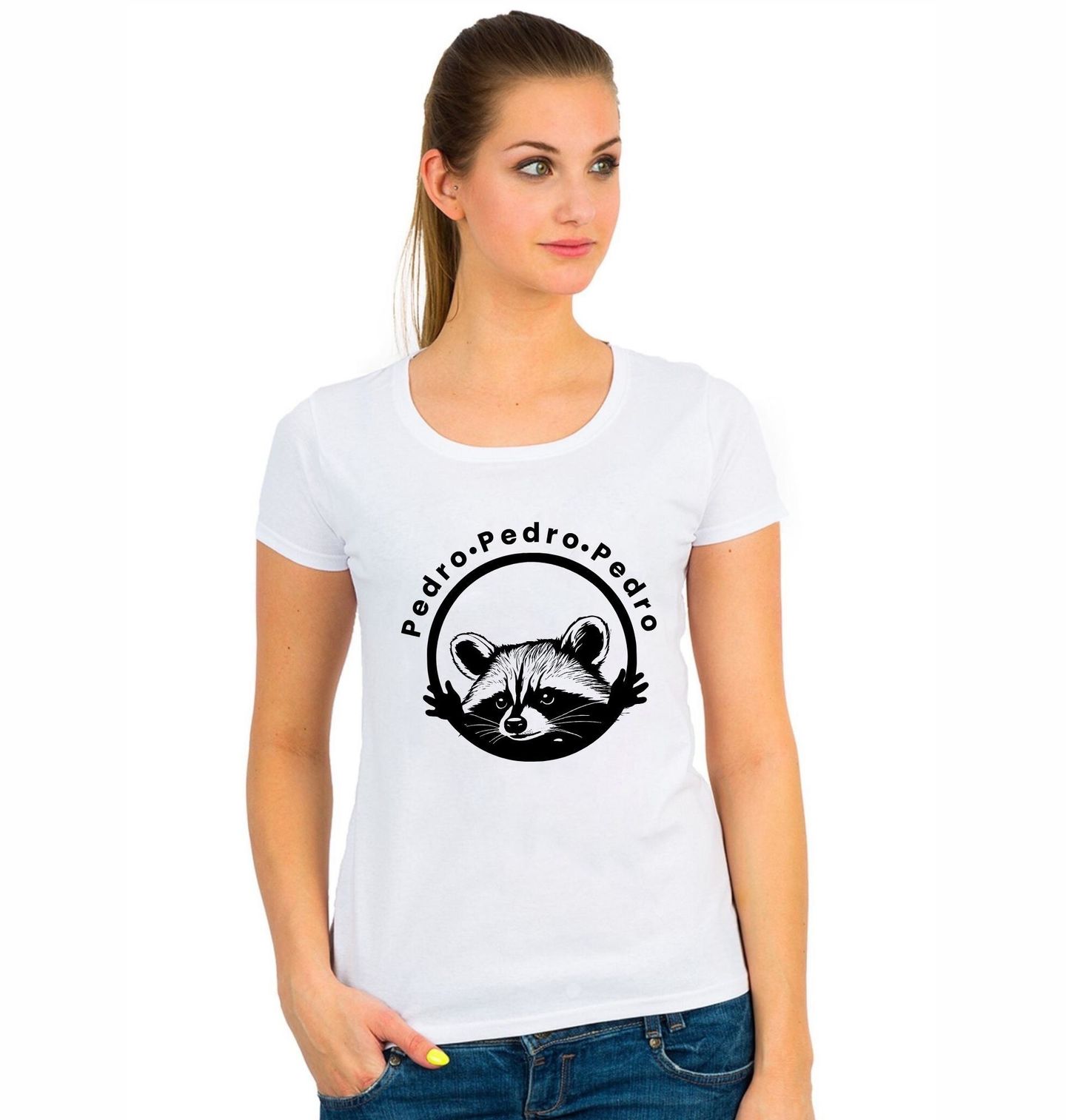 Dámské tričko Mýval Pedro Pedro Pedro. Pokud tě baví internetové hlášky, zvířecí vtipy a ironie života, mýval Pedro je přesně pro tebe. Legendární výraz, zvednuté packy a všudypřítomné „PEDRO“ k tomu… prostě meme, které bude bavit všude, kam přijdeš. Pro milovníky internetových memů.