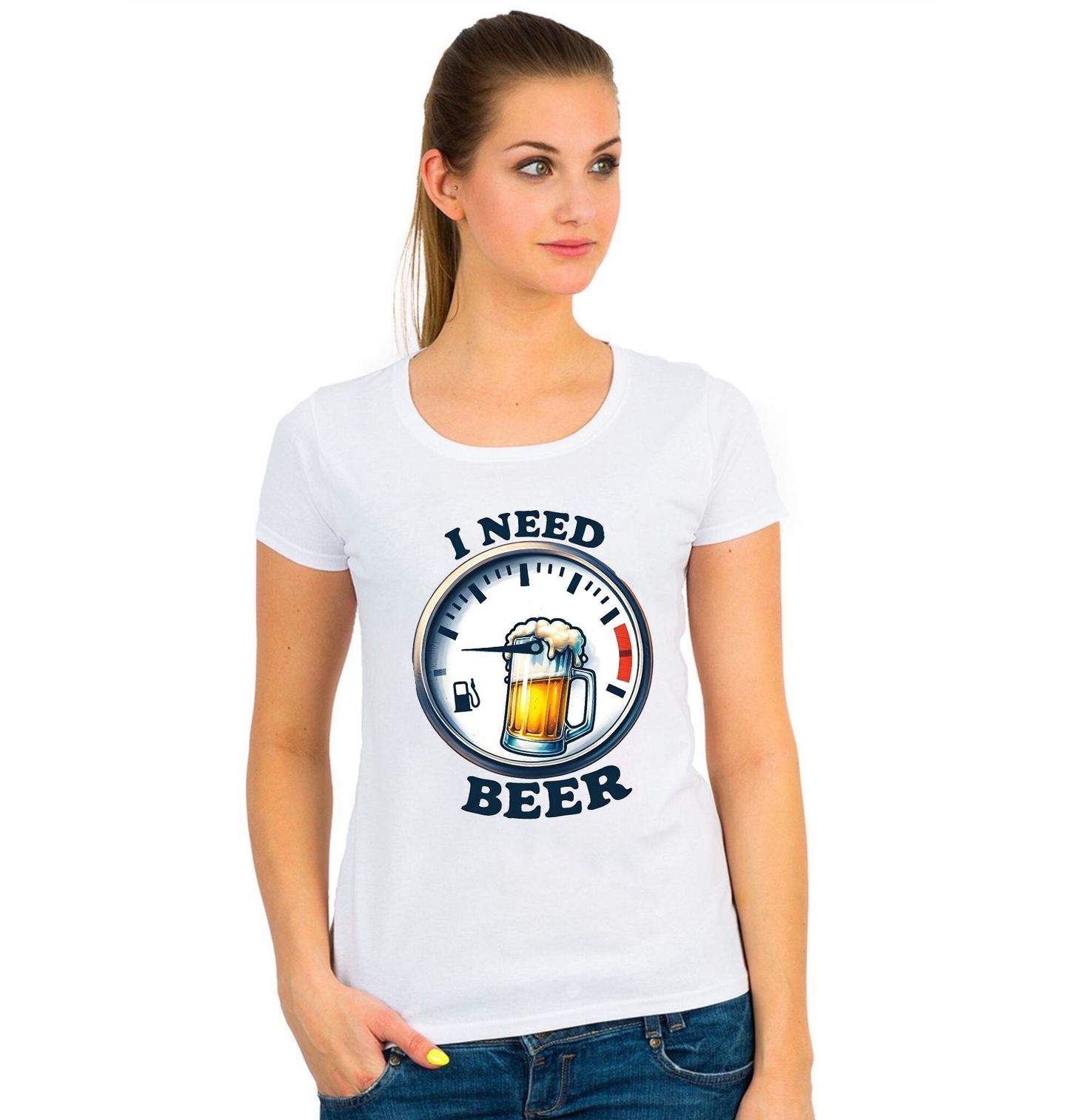 Dámské tričko Nádrž na Pivo I Need Beer. Když dochází energie, je čas doplnit palivo – a tím je samozřejmě pivo! Tento vtipný motiv s ukazatelem paliva, který místo benzínu signalizuje potřebu piva, je ideální pro každého milovníka piva, párty a dobrého alkoholu. Perfektní dárek pro pivaře, kamarády i kolegy na večírek nebo rozlučku.