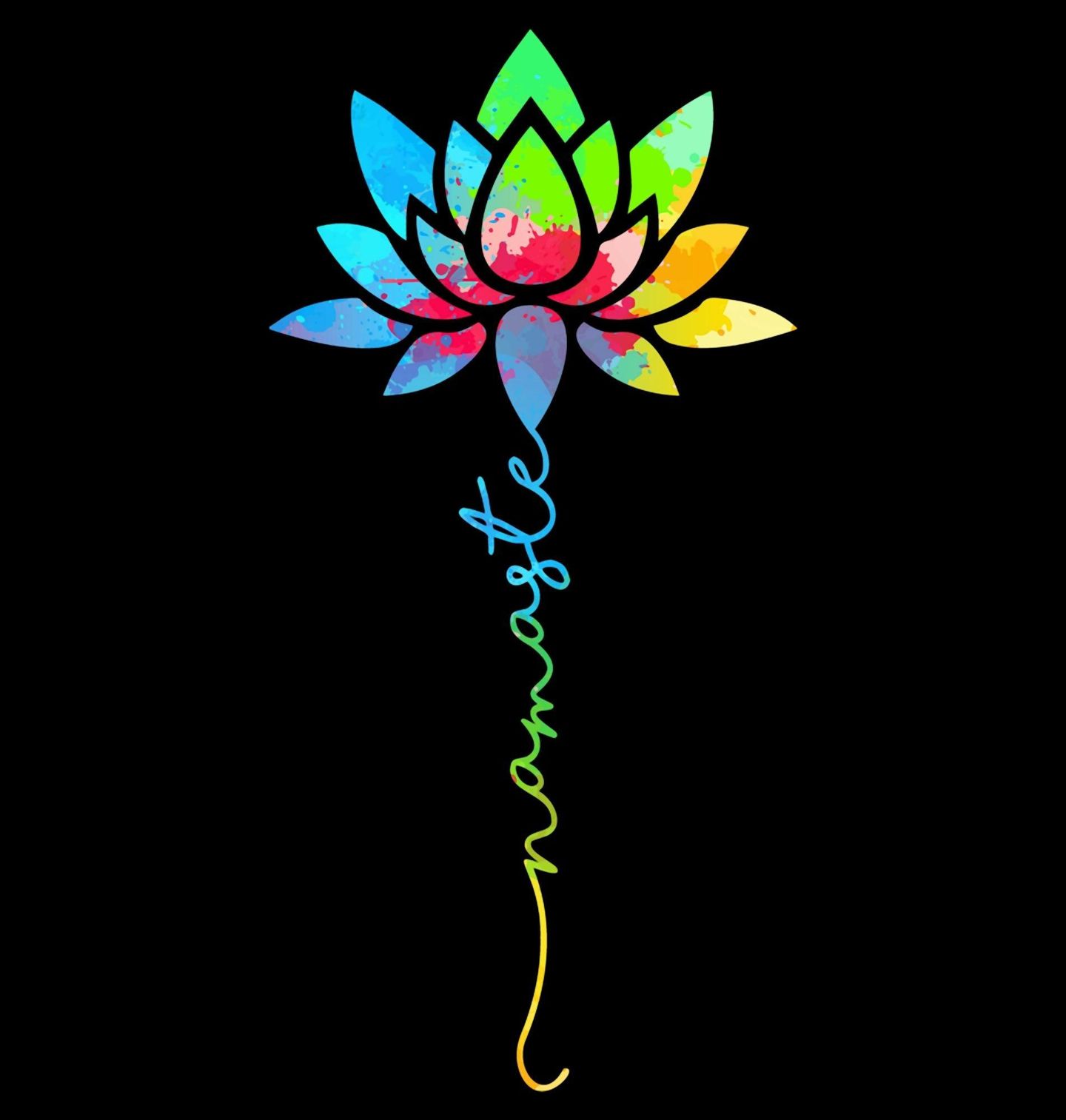 Dámské tričko Namaste Lotusový Květ. Elegantní a barevný motiv namaste v podobě duhového lotosového květu symbolizuje klid, respekt, harmonii a propojení duší. Slovo namaste je jemně zakomponované do stonku lotosu a vyzařuje pozitivní energii má meditace, budha filozofie a jóga.