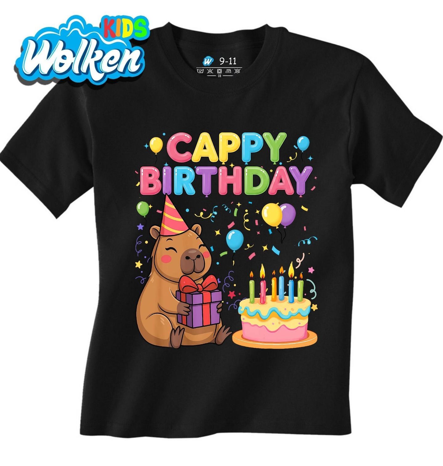 Dětské tričko Narozeniny s Kapybarou Cappy Birthday. Roztomilá kapybara v párty čepičce, dort se svíčkami, konfety, balónky a nápis „Cappy Birthday“ – tohle je ideální narozeninový motiv pro milovníky nejklidnějšího zvířete na světě! Perfektní dárek k narozeninám pro děti i dospělé, fanoušky kapybar nebo ty, kteří milují originální zvířecí motivy. Tenhle design rozzáří každou oslavu!