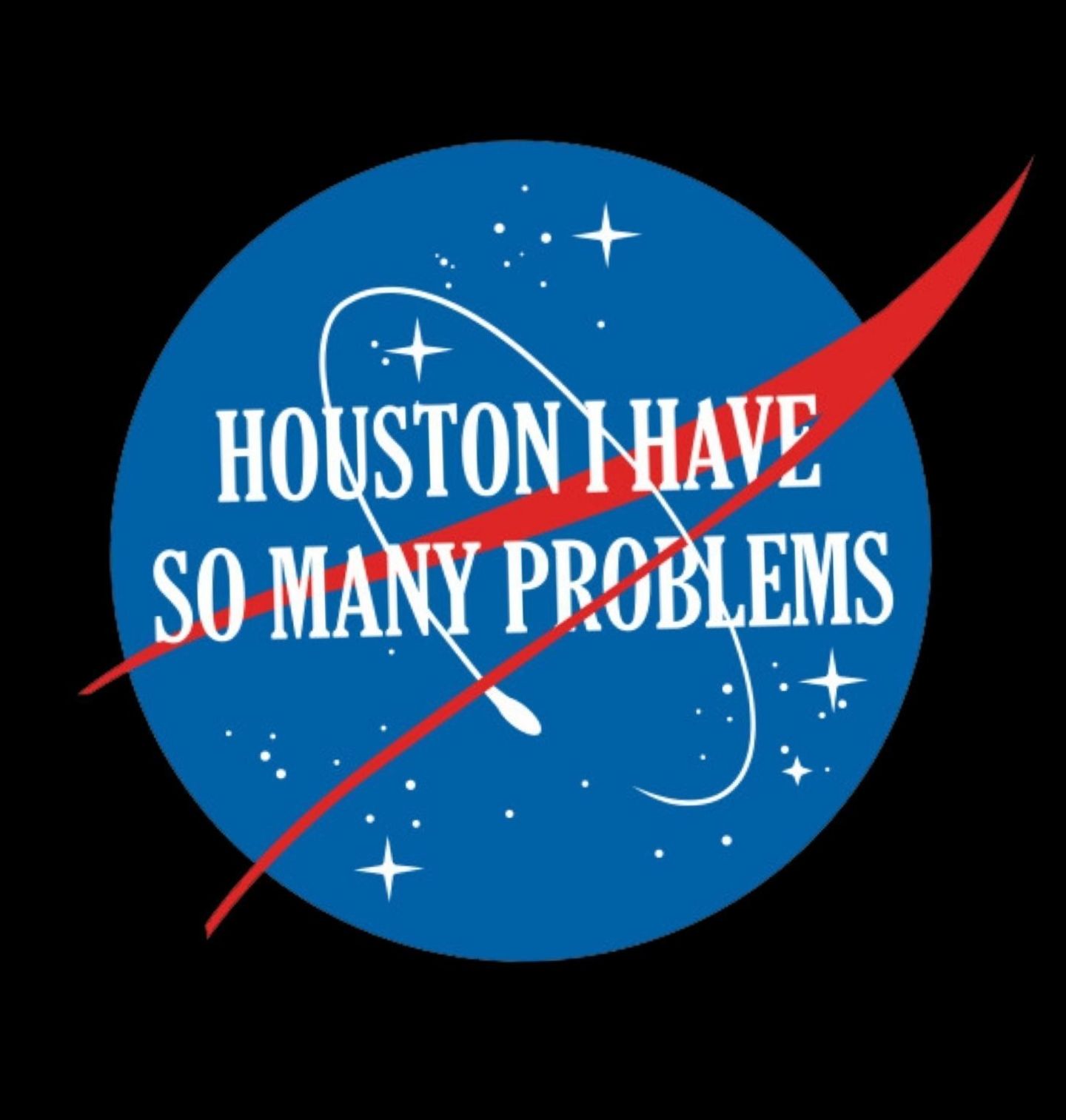 Dámské tričko NASA Houstone mám spoustu problémů parodující originální hlášku „Houstone, máme problém.“ Problémů tolik, že k někomu se už bohužel musíme obrátit. Snad nás Houston uslyší.