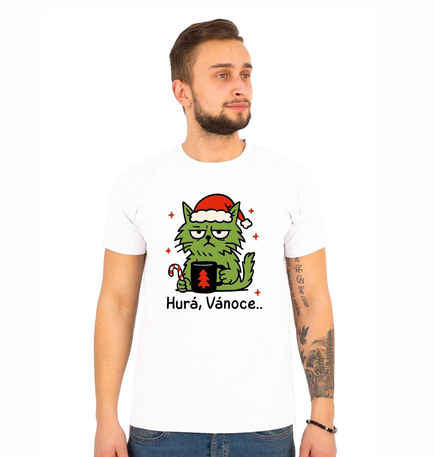 Pánské tričko Naštvaná Kočka Grinch Hurá, Vánoce..