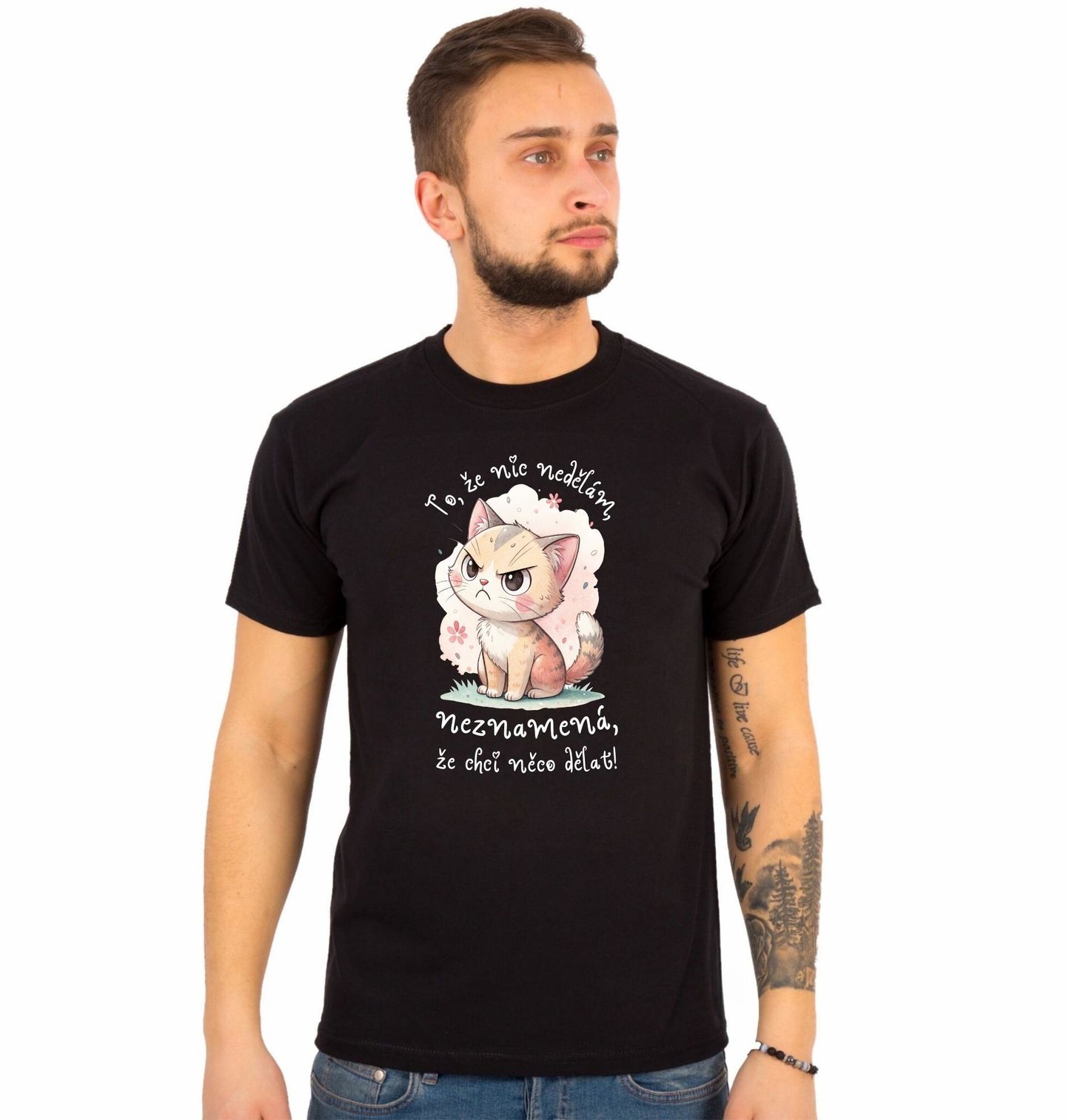 Pánské tričko Naštvaná Kočka To, že nic nedělám, neznamená, že chci něco dělat!