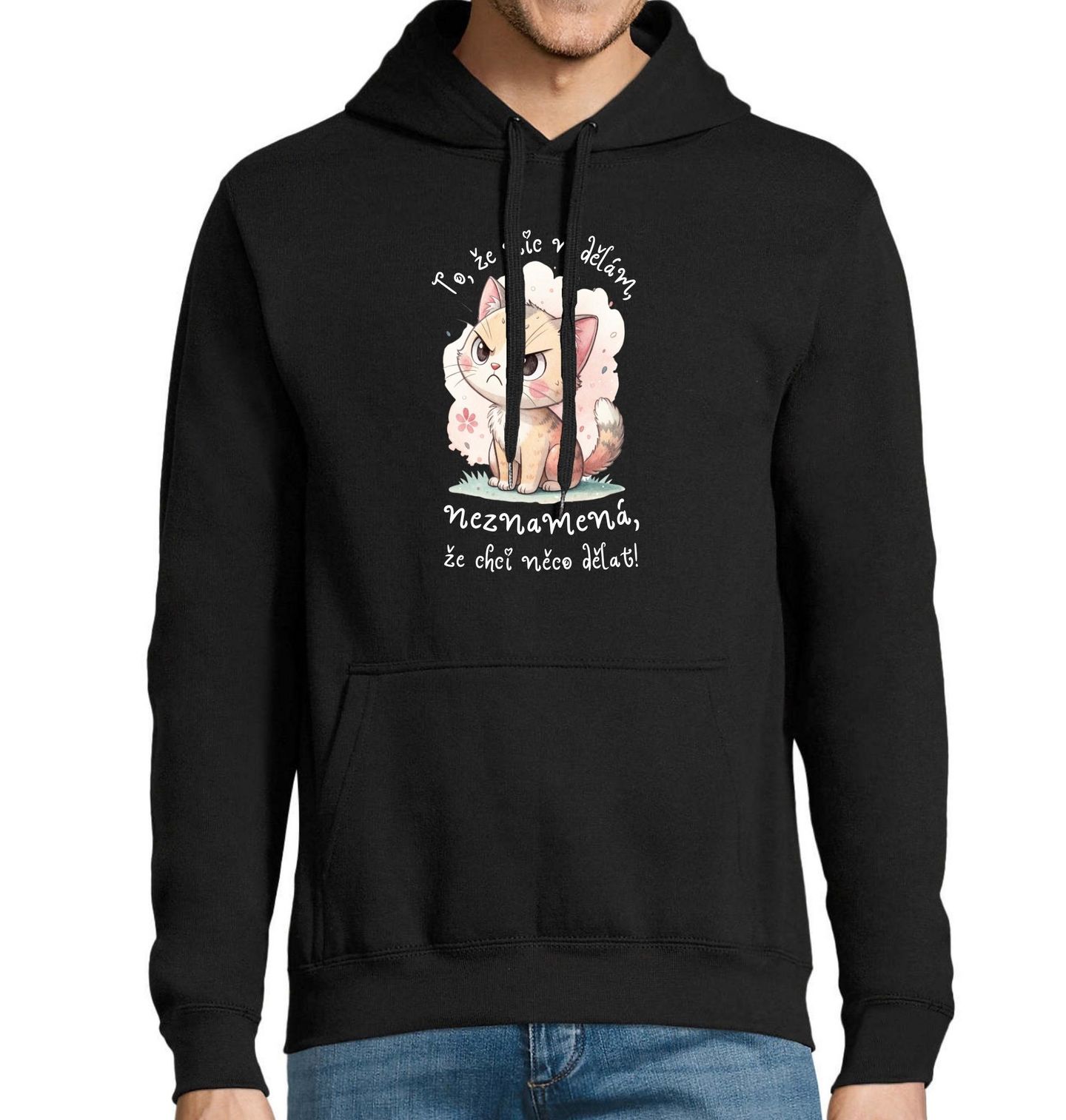 Pánská mikina Naštvaná Kočka To, že nic nedělám, neznamená, že chci něco dělat!