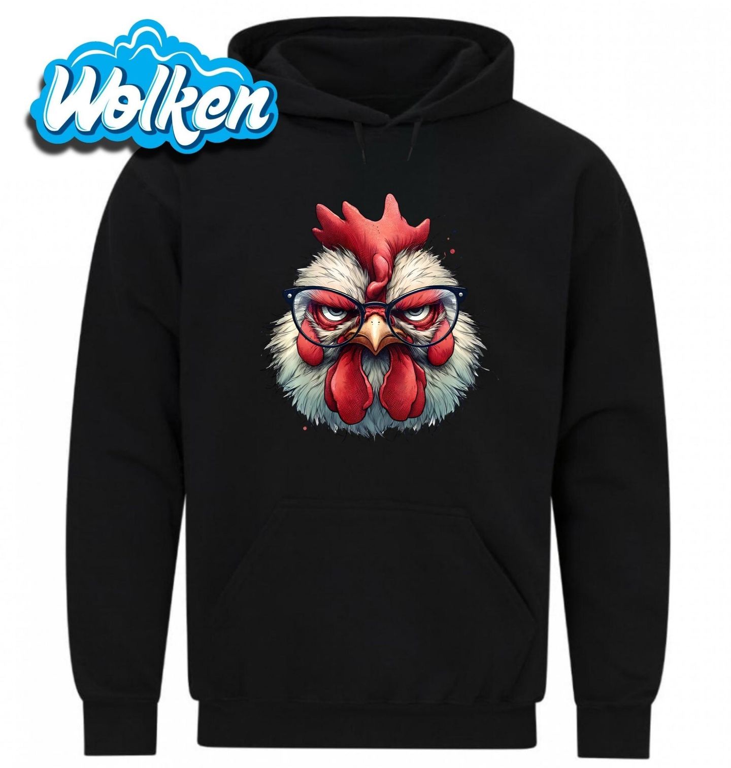 Pánská mikina Naštvaný Kohout v Brýlích. Kohout s odvážným výrazem a originální motiv pro všechny, kteří milují výrazné a netradiční potisky. Ilustrace zobrazuje detailní portrét slepice s pronikavým pohledem a stylovými brýlemi, které mu dodávají osobitý a lehce rebelský charakter. Ideální pro chovatele drůbeže, milovníky kohoutů nebo každého, kdo chce svým oblečením vyjádřit nadhled.