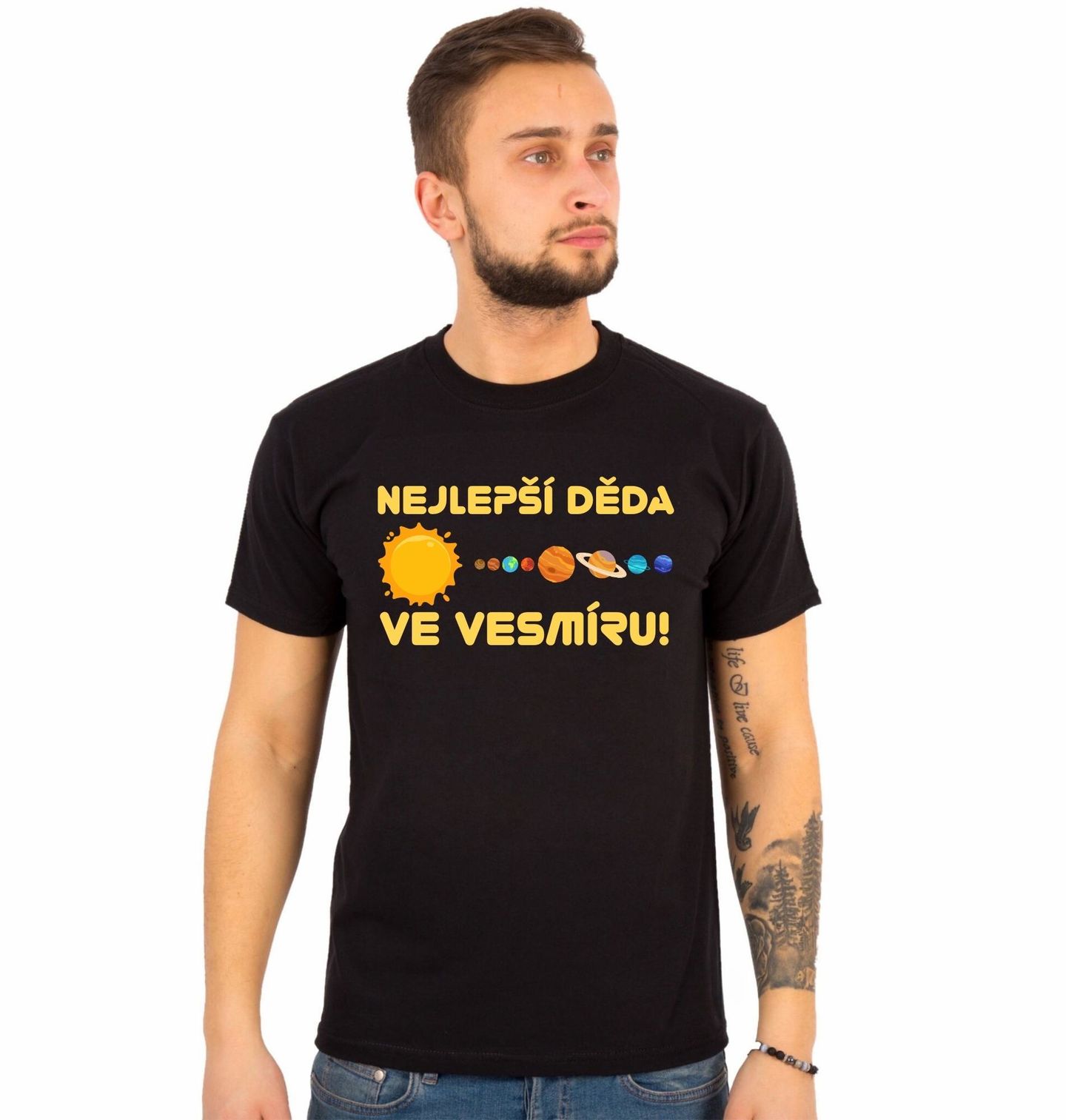 Pánské tričko Nejlepší děda ve vesmíru! Originální a hravý motiv potěší každého, kdo má svého dědu rád až za hranice galaxie. Slunce a planety symbolizují nekonečný vesmír, ve kterém je právě děda tou nejjasnější hvězdou. Skvělý dárek od vnoučat pro kohokoliv, komu je rodina na prvním místě.