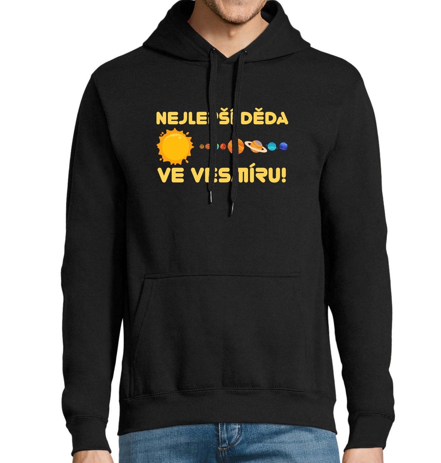 Pánská mikina Nejlepší děda ve vesmíru! Originální a hravý motiv potěší každého, kdo má svého dědu rád až za hranice galaxie. Slunce a planety symbolizují nekonečný vesmír, ve kterém je právě děda tou nejjasnější hvězdou. Skvělý dárek od vnoučat pro kohokoliv, komu je rodina na prvním místě.