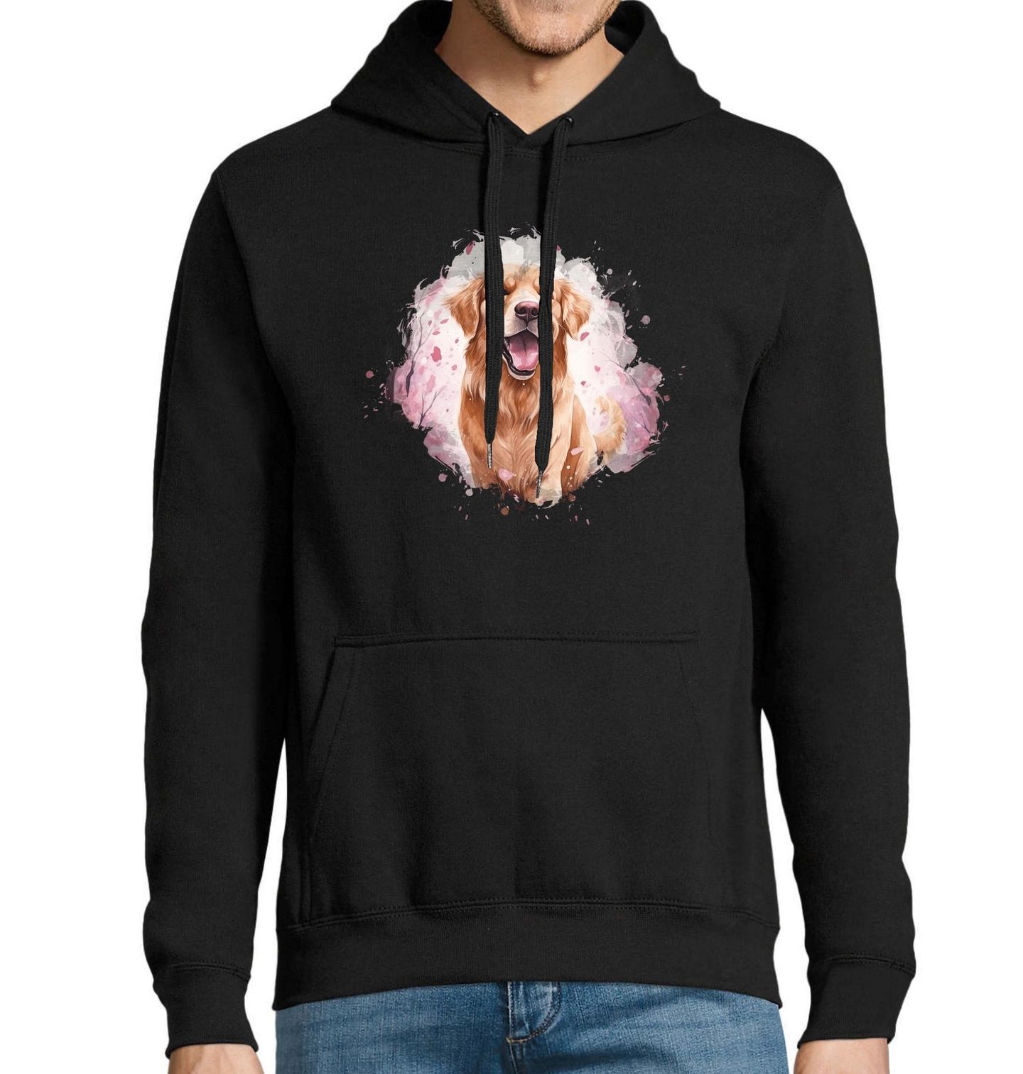 Pánská mikina Nejlepší přítel Zlatý retrívr. Toto tričko s motivem rozesmátého Zlatého retrívra je dokonalým způsobem, jak ukázat svou lásku ke psům a oslavit pozitivní energii, kterou každý pes přináší do života. Design zachycuje psa obklopeného jemnými květy a pastelovými tóny – ideální pro každého pejskaře, který miluje plemeno Zlatý retrívr a chce ho nosit i na srdci.