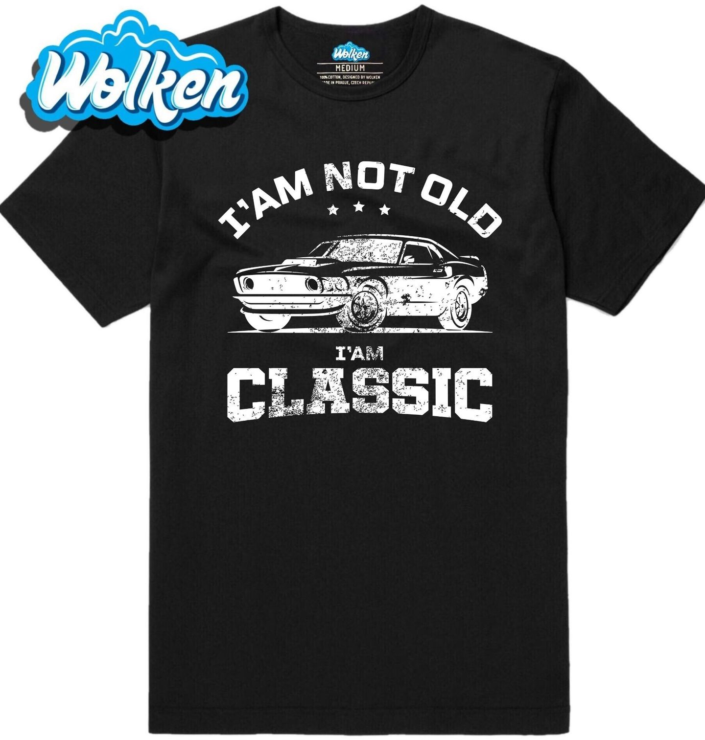 Pánské tričko Nejsem starý, jsem klasika I'm not old, I'm classic. Stylový motiv s americkým muscle carem a nápisem „I'M NOT OLD – I'M CLASSIC“ (v překladu „Nejsem starý – jsem klasika“) je skvělou volbou pro všechny milovníky aut a vintage stylu. Ideální pro fanoušky veteránů, sběratele nebo prostě každého, kdo ví, že klasika má hodnotu.