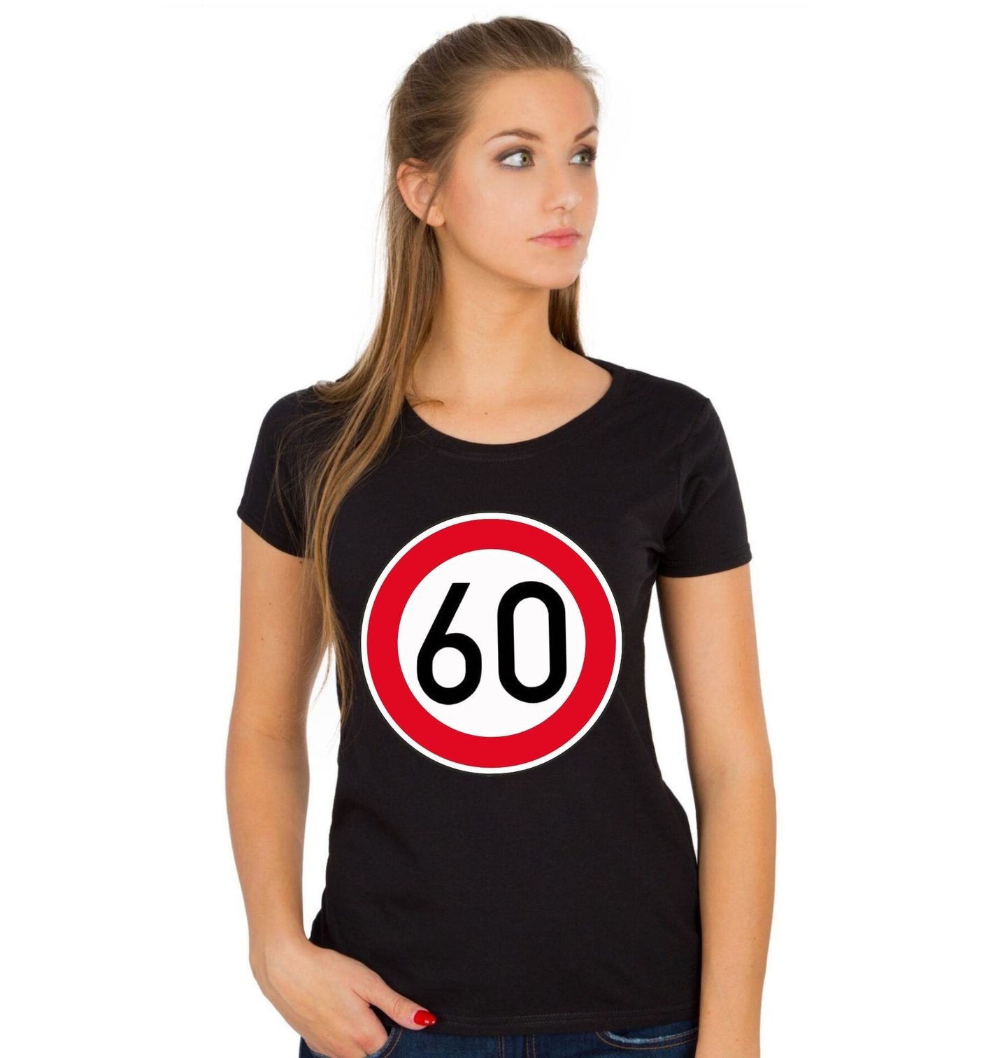 Dámské tričko Nejvyšší dovolená rychlost 60. Design inspirovaný dopravní značkou “Nejvyšší dovolená rychlost” s číslem „60“, která je zobrazena v typickém kruhu s červeným okrajem a bílým středem. Černé číslo 60 dominuje celému motivu a symbolizuje rychlostní limit, věk nebo milník. Vhodný dárek pro oslavence k šedesátinám.