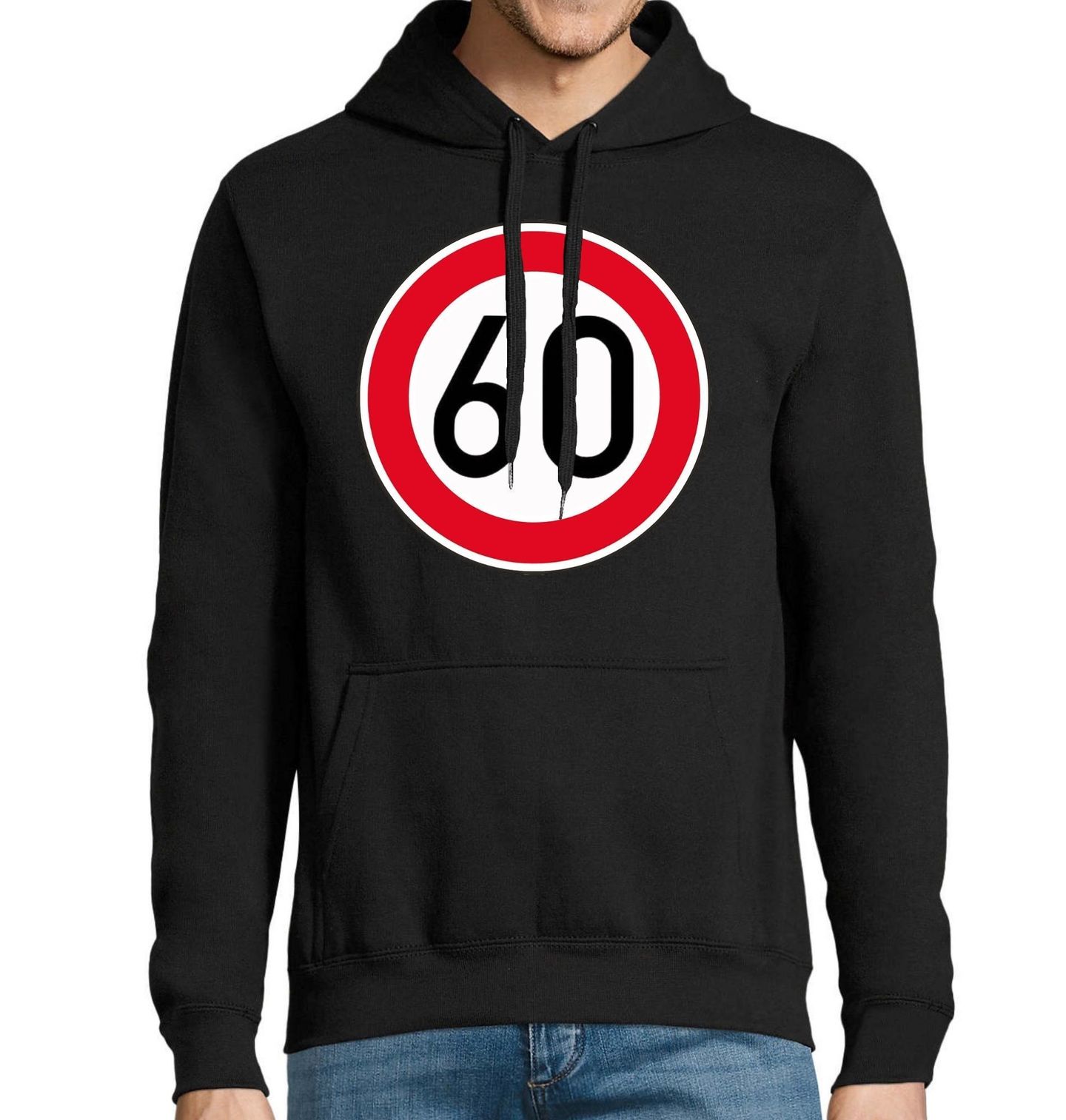Pánská mikina Nejvyšší dovolená rychlost 60. Design inspirovaný dopravní značkou “Nejvyšší dovolená rychlost” s číslem „60“, která je zobrazena v typickém kruhu s červeným okrajem a bílým středem. Černé číslo 60 dominuje celému motivu a symbolizuje rychlostní limit, věk nebo milník. Vhodný dárek pro oslavence k šedesátinám.