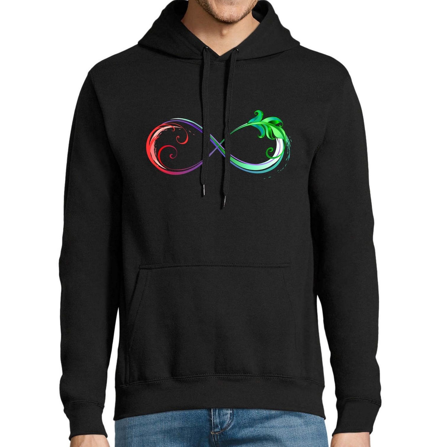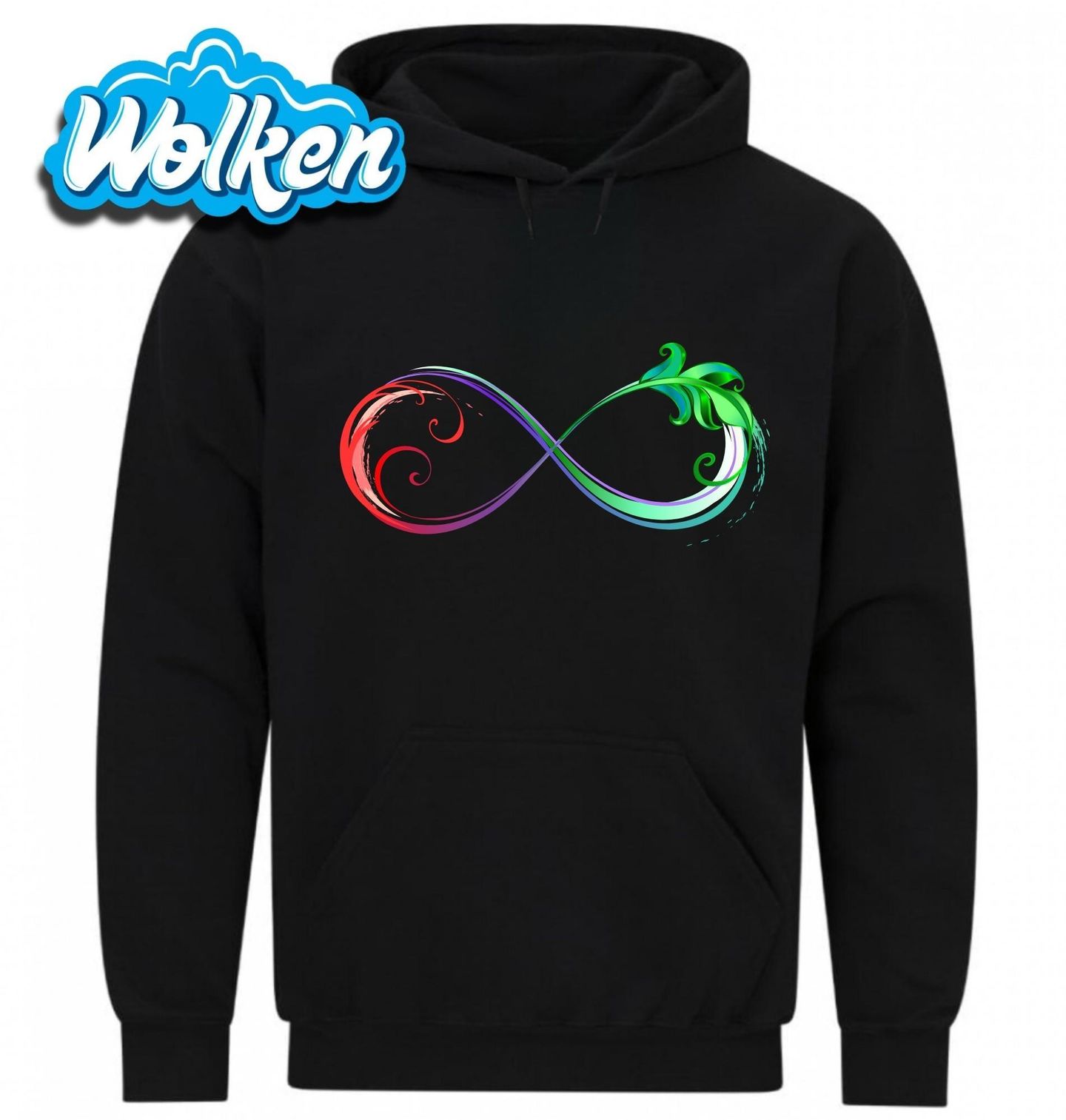 Pánská mikina Nekonečná harmonie živlů. Stylizované listy a vířivý pohyb symbolizují růst, pohyb a harmonii, zatímco tvar nekonečno připomíná, že vše, co zakoření hluboko, může trvat navždy. Ideální volba pro ty, kdo cítí propojení s přírodou, změnou a věčností.