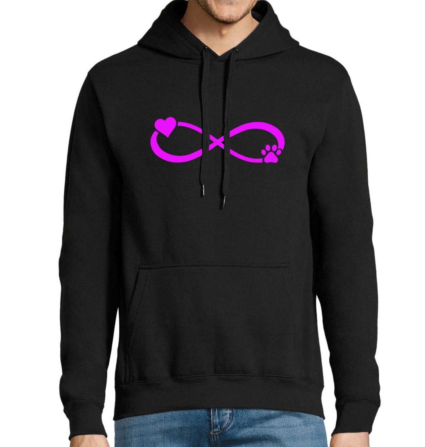 Pánská mikina Nekonečná Psí Láska. Nekonečno, srdce a psí tlapky - protože láska ke psům nemá konec. Pro každého, kdo ví, že pes je nejlepší přítel na celý život. Ať už jste hrdý majitel pejska, milovník zvířat, nebo hledáte dárek pro někoho, kdo svého psa bere jako člena rodiny, tohle tričko řekne vše za vás.