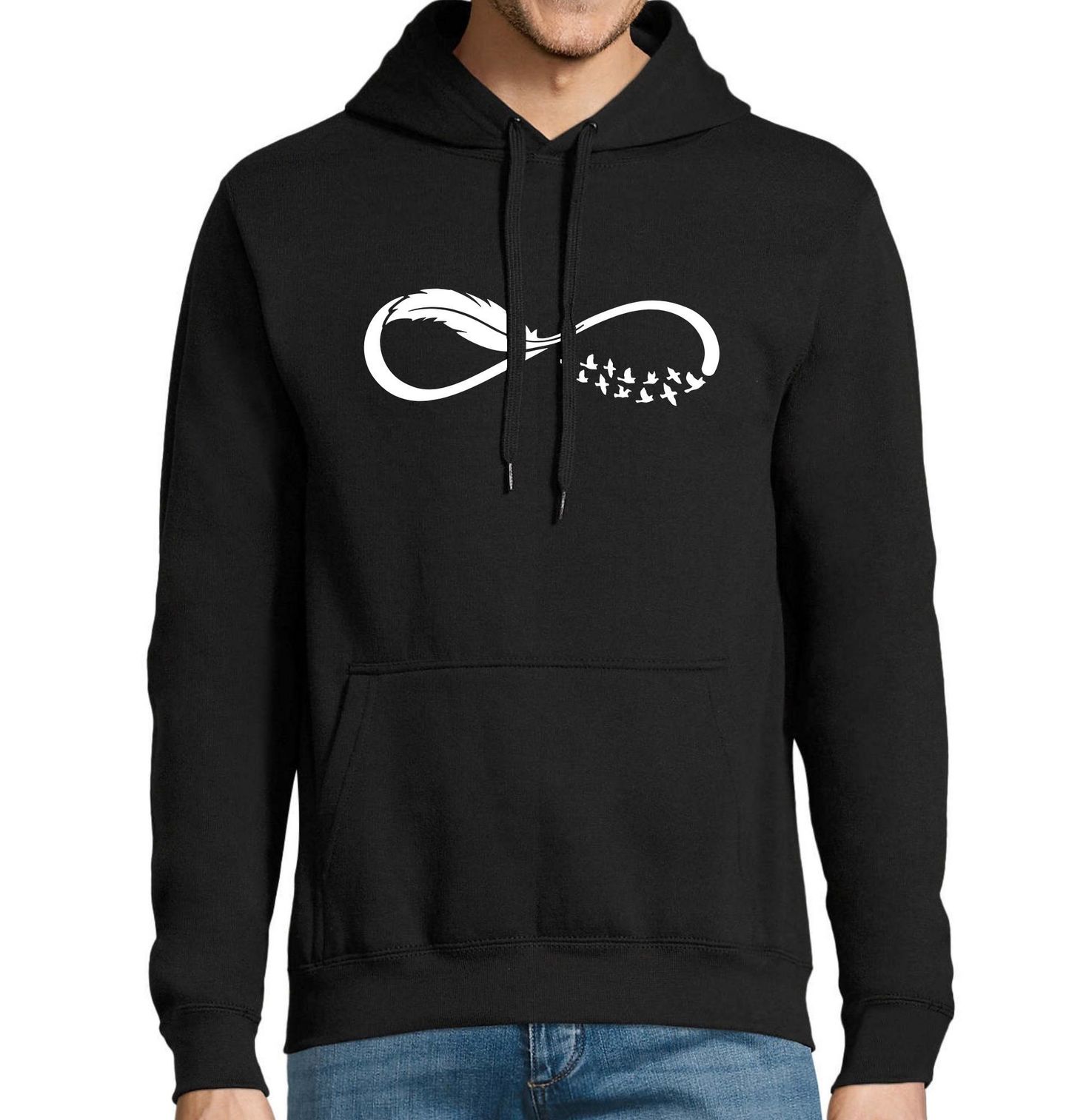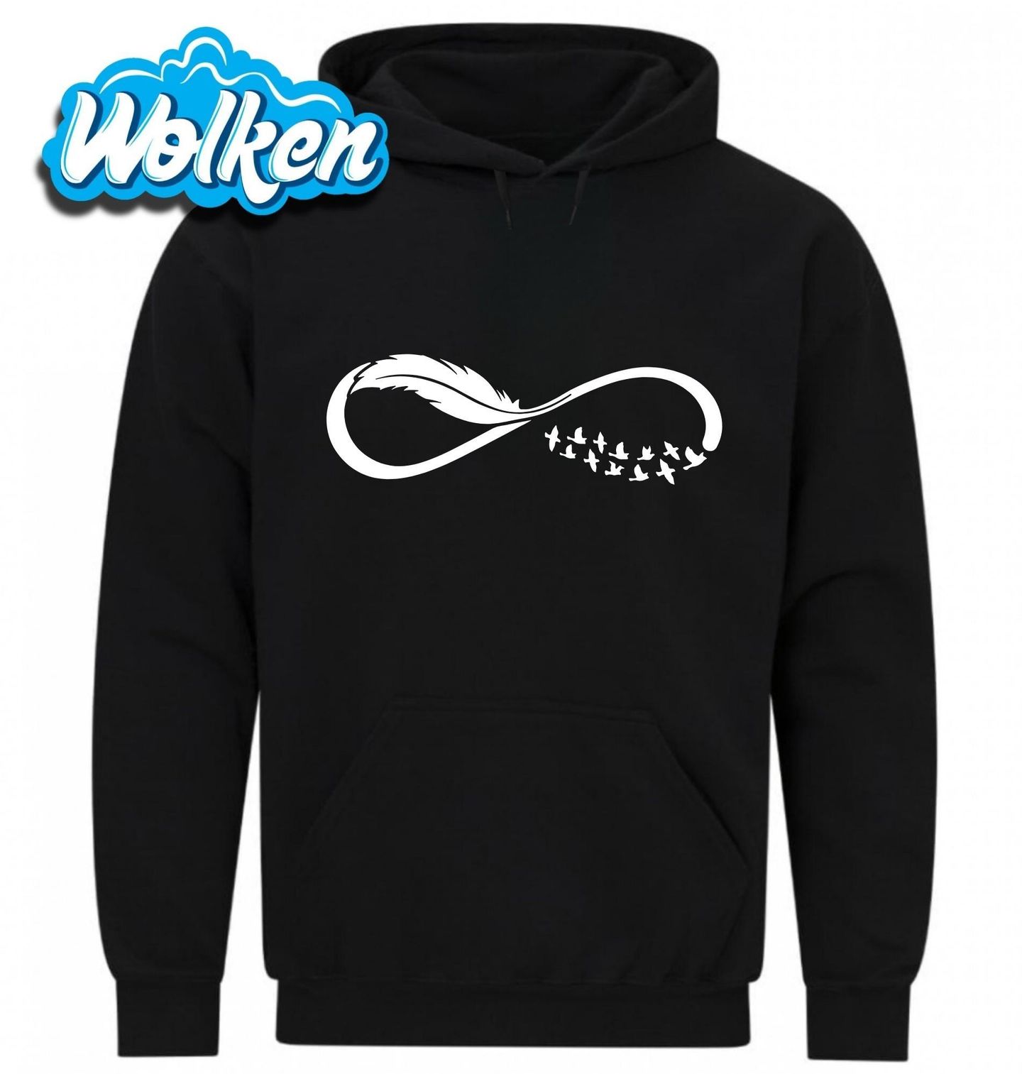 Pánská mikina Nekonečný Let Ptáků. Nekonečno spojené s ptáky v letu připomíná, že svoboda nemá hranic. Ať už milujete přírodu, volnost, nebo hledáte originální kousek do svého šatníku, tohle tričko je ideální volbou. Perfektní dárek pro každého, kdo miluje ptáky a svobodu.