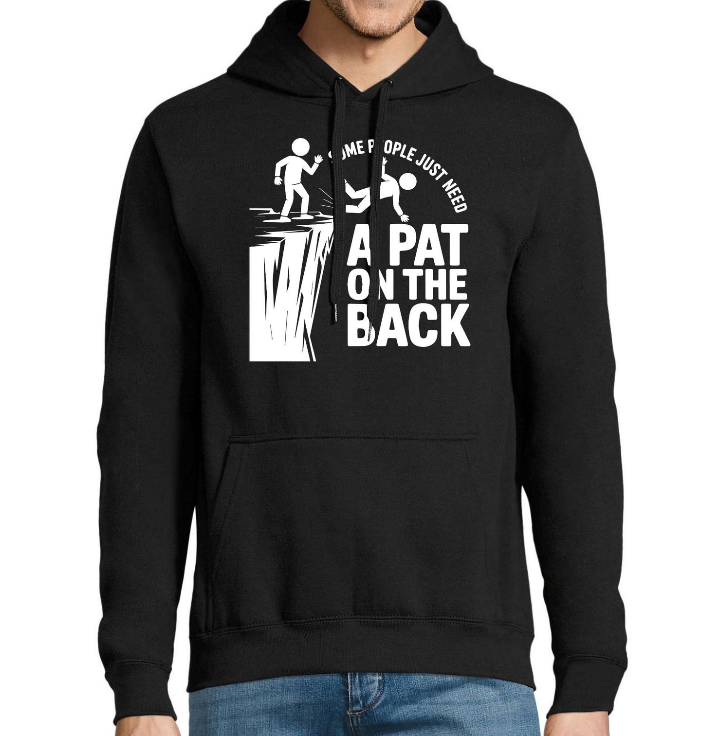 Pánská mikina Někteří lidé potřebují jen poplácat po zádech. “Some people just need a pat on the back”. Originální a lehce provokativní motiv s černým humorem, který rozhodně nezůstane bez povšimnutí. Grafika znázorňuje situaci na okraji útesu a doplňuje ji výrazný nápis, jenž si pohrává s dvojznačností. Tento design je ideální pro ty, kteří mají rádi ironii, sarkasmus a odvážný styl.
