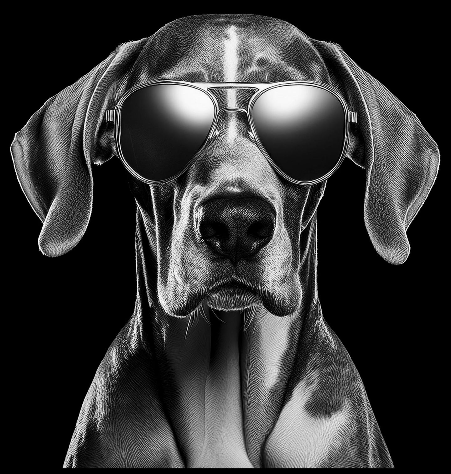 Dámské tričko Německá doga s Brýlemi. Tento elegantní pes působí sebevědomě, stylově a zároveň si zachovává typickou důstojnost, kterou Německá doga proslula. Každý pejskař, který obdivuje majestátní vzhled a klidnou povahu tohoto plemene, si přijde na své. Motiv Německá doga je ideální volbou na tričko, mikinu nebo doplněk pro všechny, kteří chtějí dát světu najevo, že pes je jejich srdcová záležitost.
