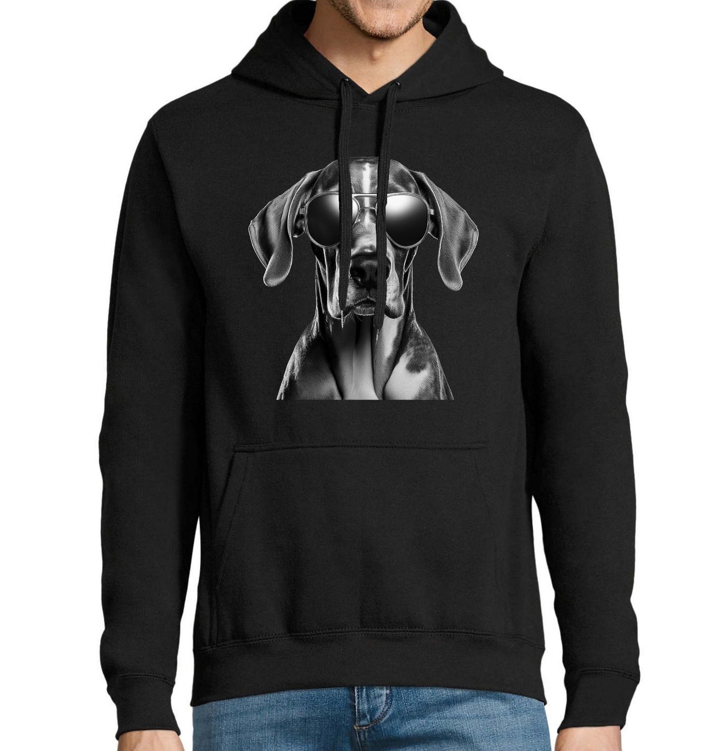 Pánská mikina Německá doga s Brýlemi. Tento elegantní pes působí sebevědomě, stylově a zároveň si zachovává typickou důstojnost, kterou Německá doga proslula. Každý pejskař, který obdivuje majestátní vzhled a klidnou povahu tohoto plemene, si přijde na své. Motiv Německá doga je ideální volbou na tričko, mikinu nebo doplněk pro všechny, kteří chtějí dát světu najevo, že pes je jejich srdcová záležitost.