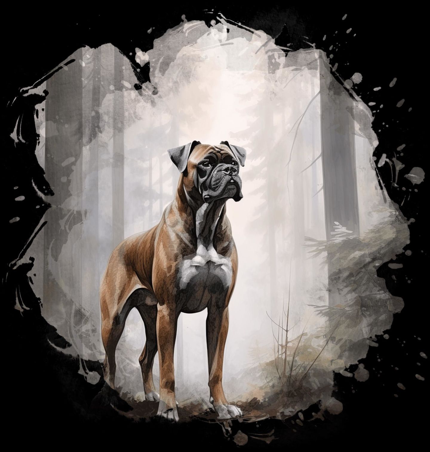 Pánská mikina Německý Boxer v Lesní Mlze. Působivý pes v celé své přirozené síle, klidu a ostražitosti. V mlžném lese stojí hrdý Boxer, který vyzařuje odvahu, věrnost a vnitřní rovnováhu. Akvarelové zpracování dodává obrazu atmosféru ticha a hloubky, díky které motiv nepůsobí agresivně, ale naopak vyrovnaně a majestátně. Tento design je ideální volbou pro pejskaře, kteří obdivují charakter a oddanost.