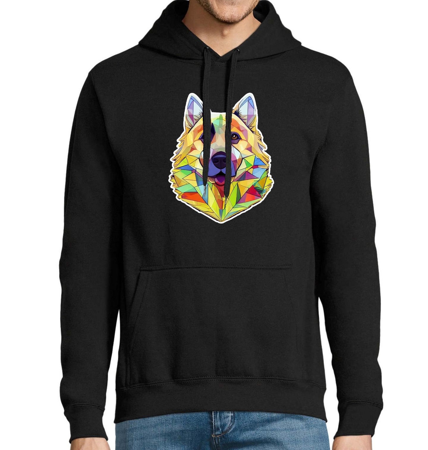 Pánská mikina Německý ovčák Polygon Dog. Originální geometrický portrét plemene Německý ovčák, který zaujme každého moderního pejskaře! Tento pes v netradičním barevném zpracování spojuje eleganci a sílu ve stylovém designu. Motiv Německý ovčák v abstraktním polygonálním stylu je ideální pro milovníky umění, originality a samozřejmě pro každého, komu je blízký tento chytrý a oddaný pes.