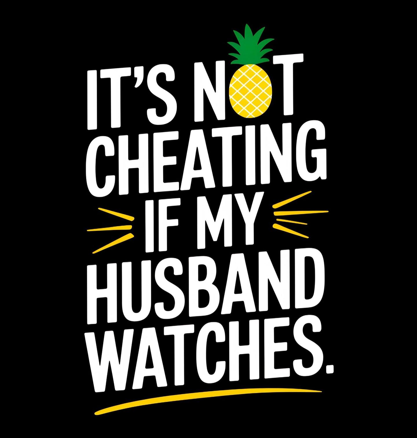 Pánské tričko Není to nevěra, když se můj manžel dívá. Humorný design s nápisem „IT’S NOT CHEATING IF MY HUSBAND WATCHES.“ přináší odlehčený pohled na manželství a partnerské vztahy. Překlad textu zní: „Není to nevěra, když se můj manžel dívá,“ což dělá z tohoto motivu odvážný a zábavný kousek pro ty, kdo mají smysl pro humor. Motiv skvěle vystihuje nadsázku a hravost, která může být součástí každého manželství.