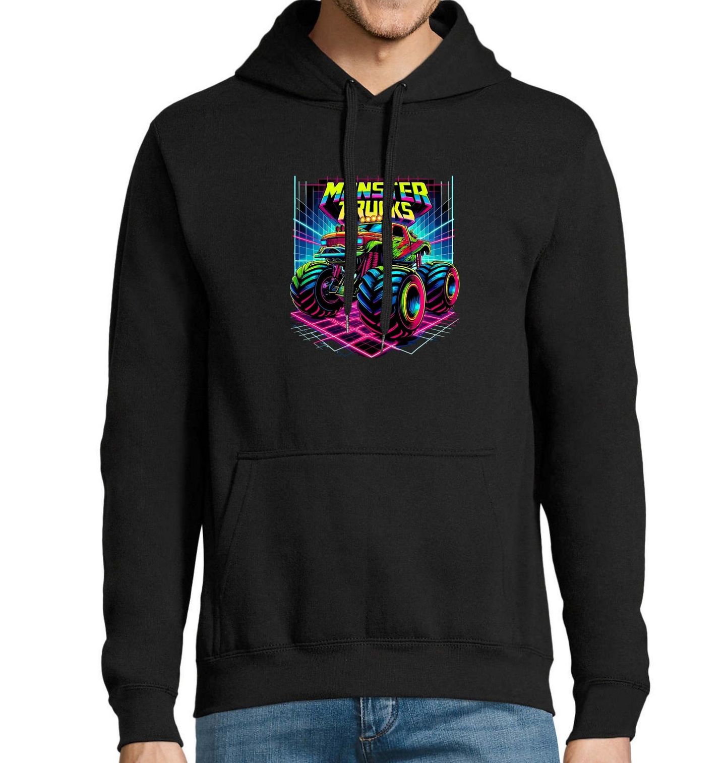 Pánská mikina Neon Monster Truck. Auto, které drtí všechno přináší ikonický motiv obřího trucku v neonových barvách, připraveného rozdrtit jakýkoli terén. Retro-futuristický design s výraznými barvami připomíná 80’s herní estetiku – ideální pro všechny, kdo milují silné stroje, vůni benzínu a světla závodních arén.