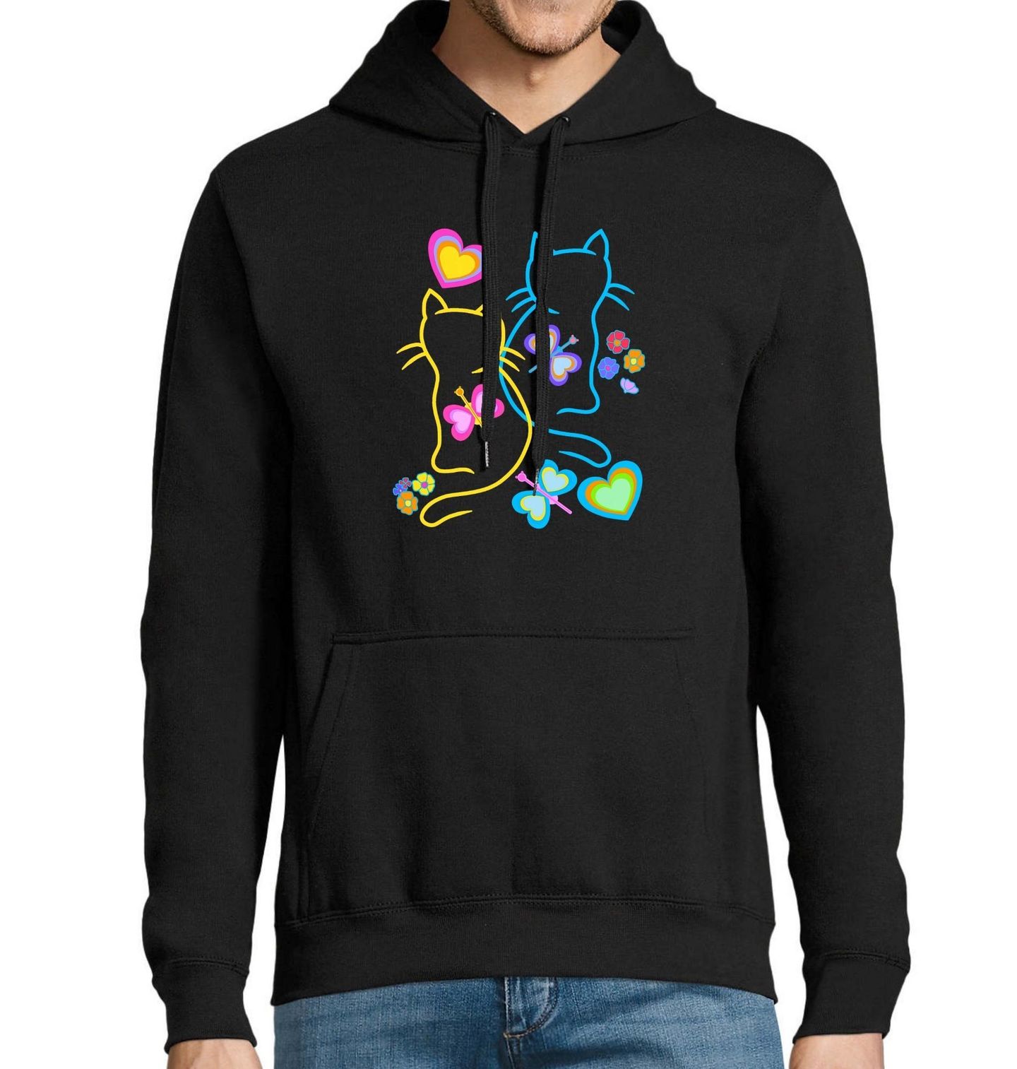 Pánská mikina Neonové Kočky a Motýli