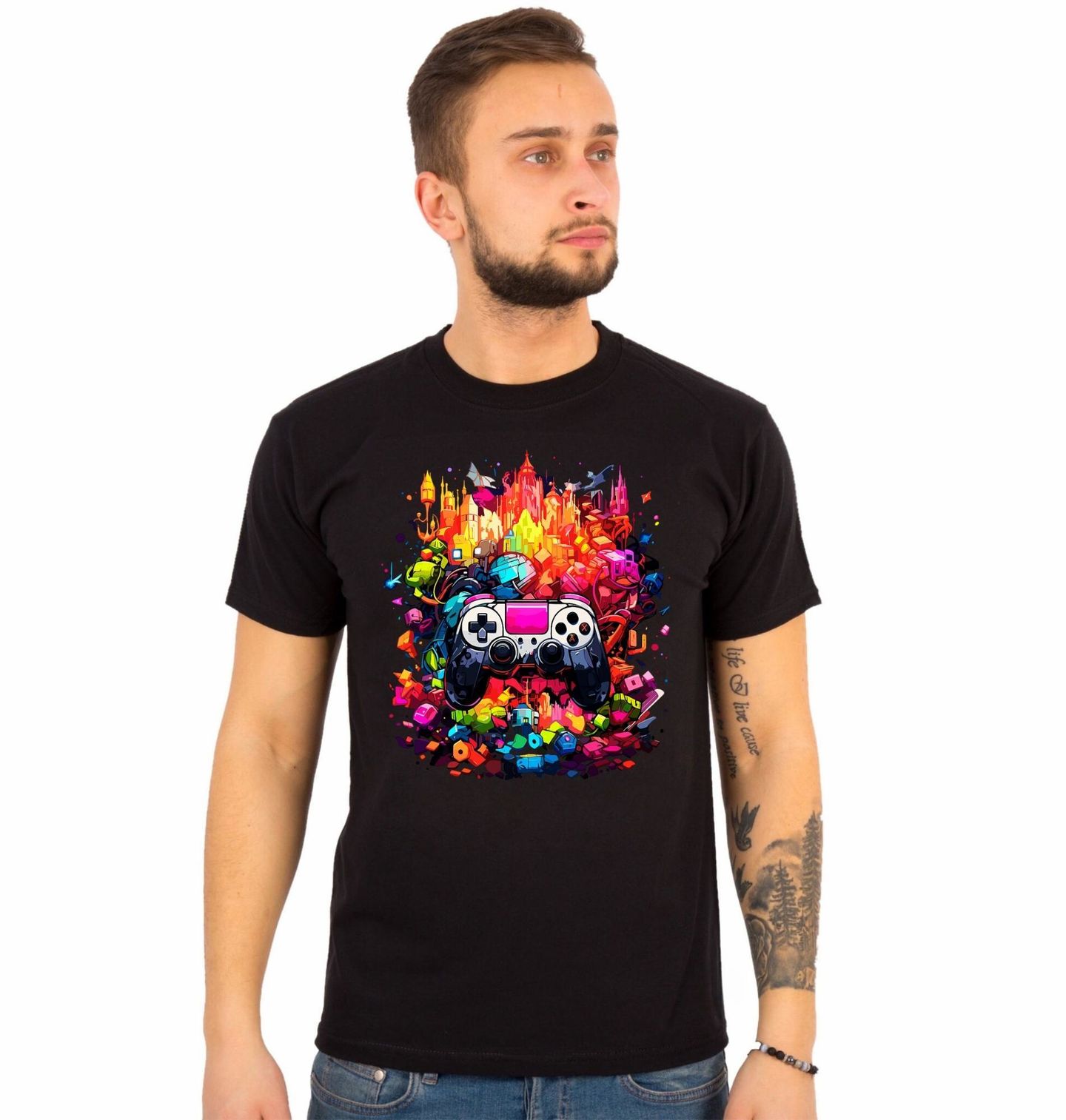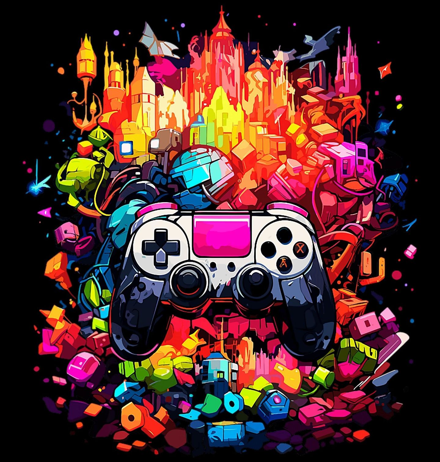 Pánské tričko Neonový Herní ovladač. Výrazný barevný motiv spojuje futuristické město, energii digitálního světa a ikonický herní ovladač, který je symbolem každého nadšeného gamer stylu. Dynamická ilustrace působí jako exploze pixelů a detailů, díky kterým se každý hráč okamžitě pozná. Design je ideální pro všechny, kdo milují moderní gaming kulturu, arkádovou atmosféru a neonový vizuál plný pohybu.