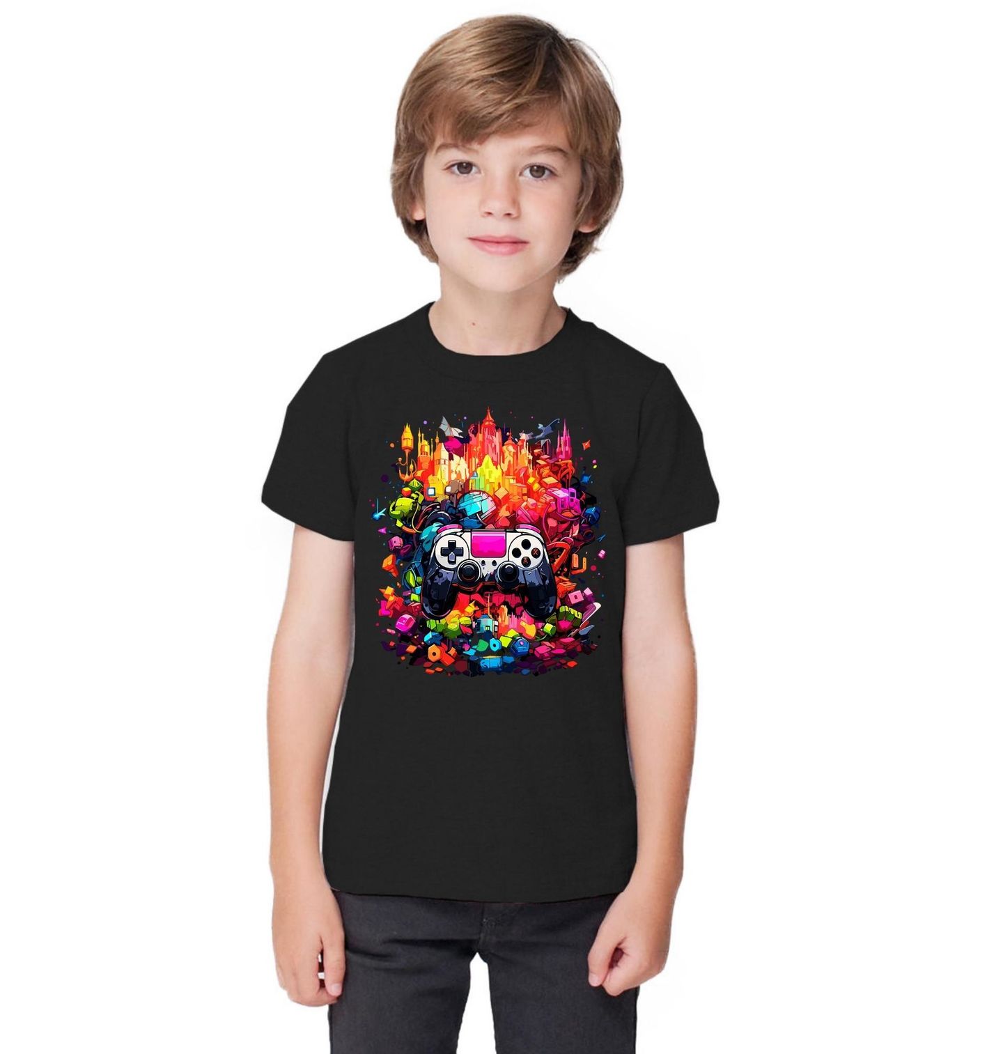 Dětské tričko Neonový Herní ovladač. Výrazný barevný motiv spojuje futuristické město, energii digitálního světa a ikonický herní ovladač, který je symbolem každého nadšeného gamer stylu. Dynamická ilustrace působí jako exploze pixelů a detailů, díky kterým se každý hráč okamžitě pozná. Design je ideální pro všechny, kdo milují moderní gaming kulturu, arkádovou atmosféru a neonový vizuál plný pohybu.