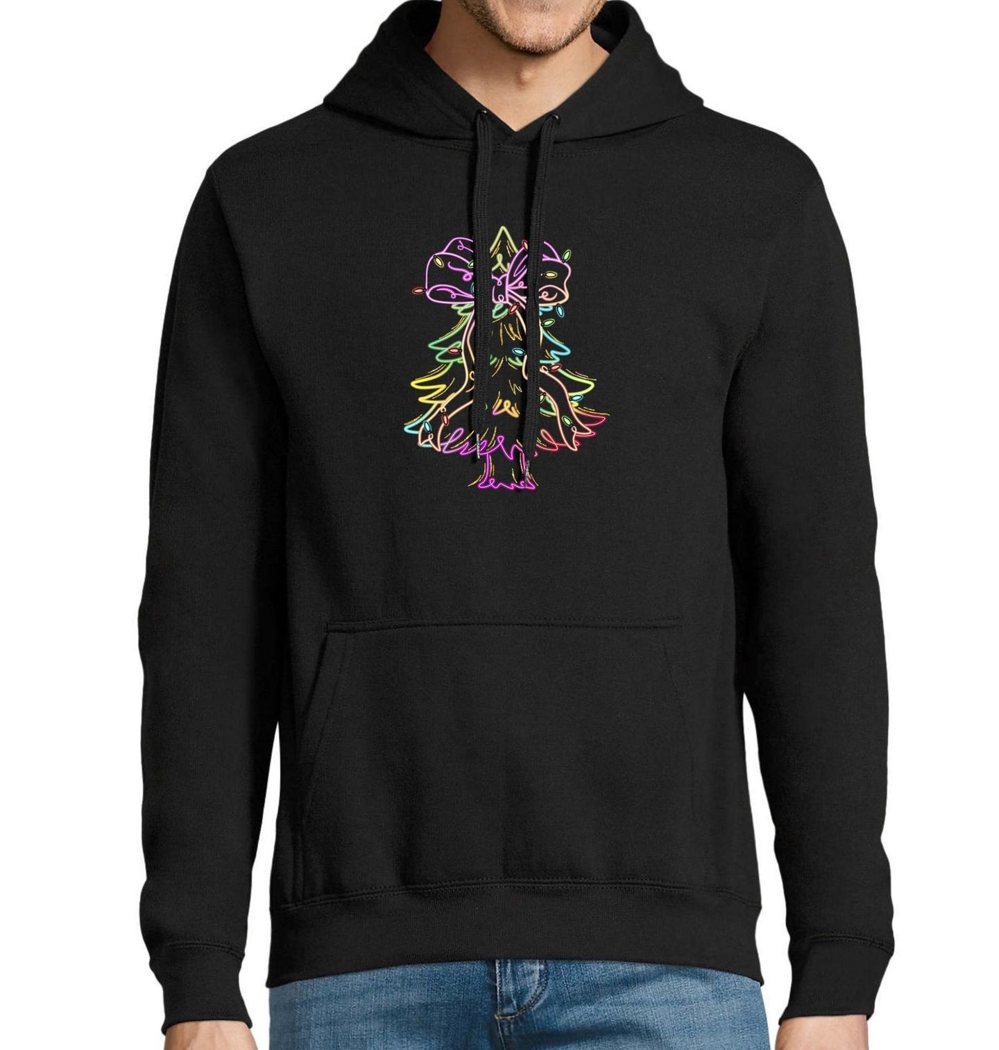 Pánská mikina Neonový Vánoční Stromeček. Originální neonový motiv vánočního stromečku ozdobeného světýlky a výraznou mašlí přináší moderní pojetí tradičního symbolu. Díky zářivým barvám a efektu svítících kontur působí design energicky a hravě. Vánoce v tomto stylu získávají jedinečný vizuální rozměr, který potěší všechny milovníky nevšedních a barevných dekorací.